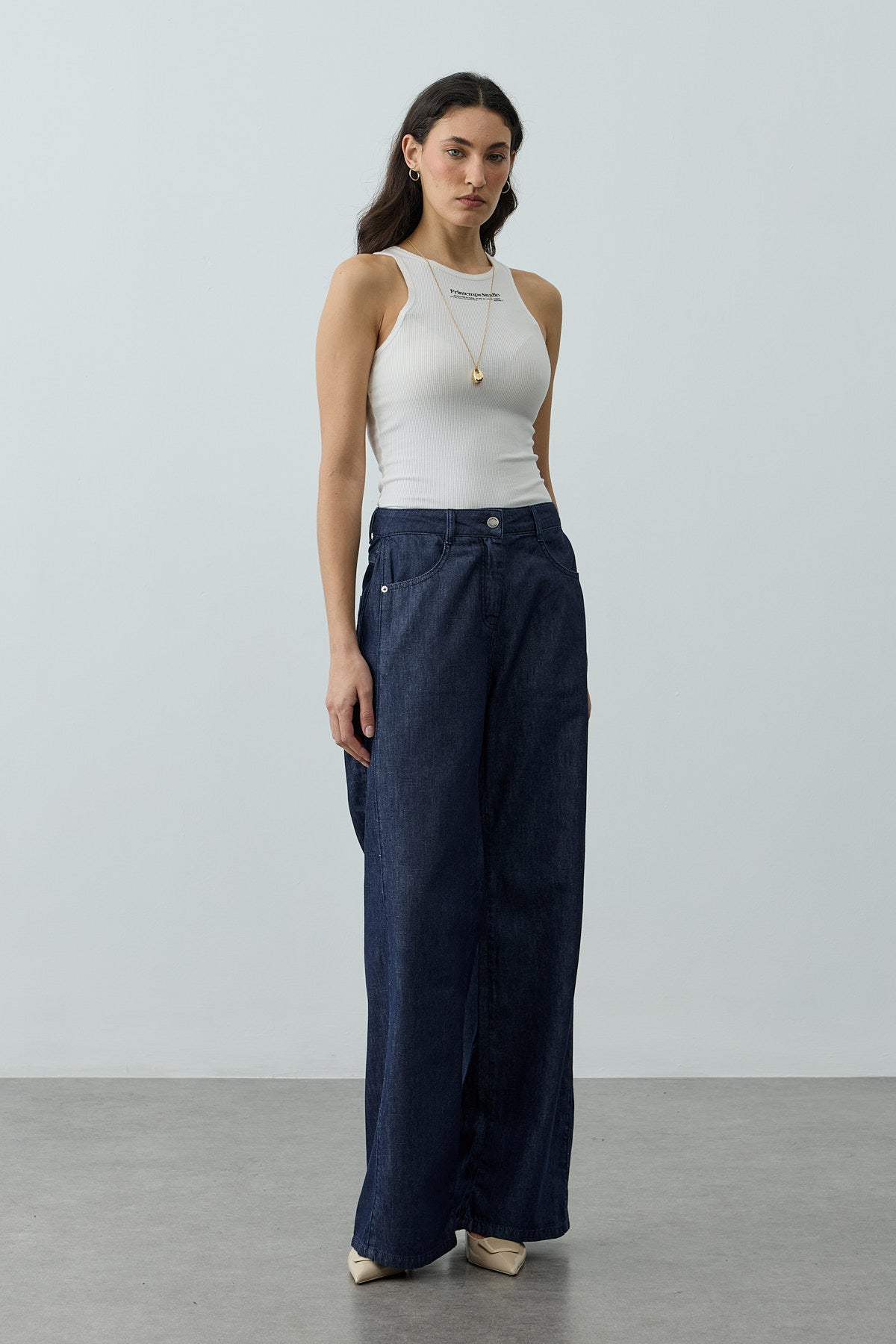 Pileli Denim Pantolon – İndigo