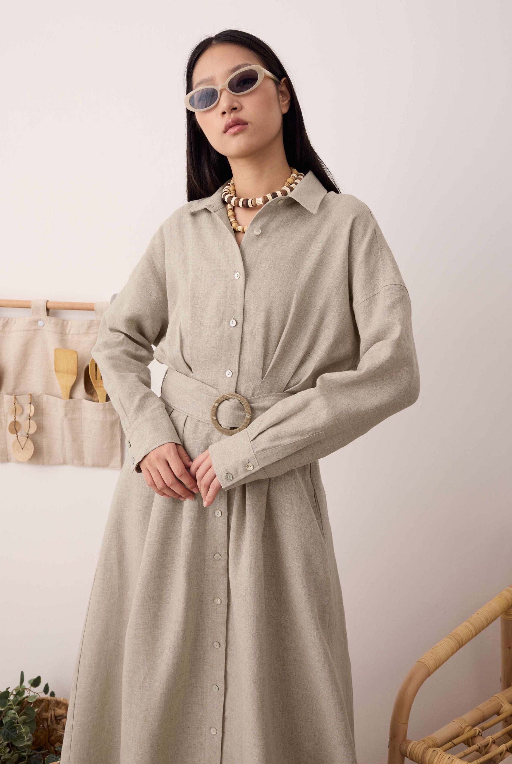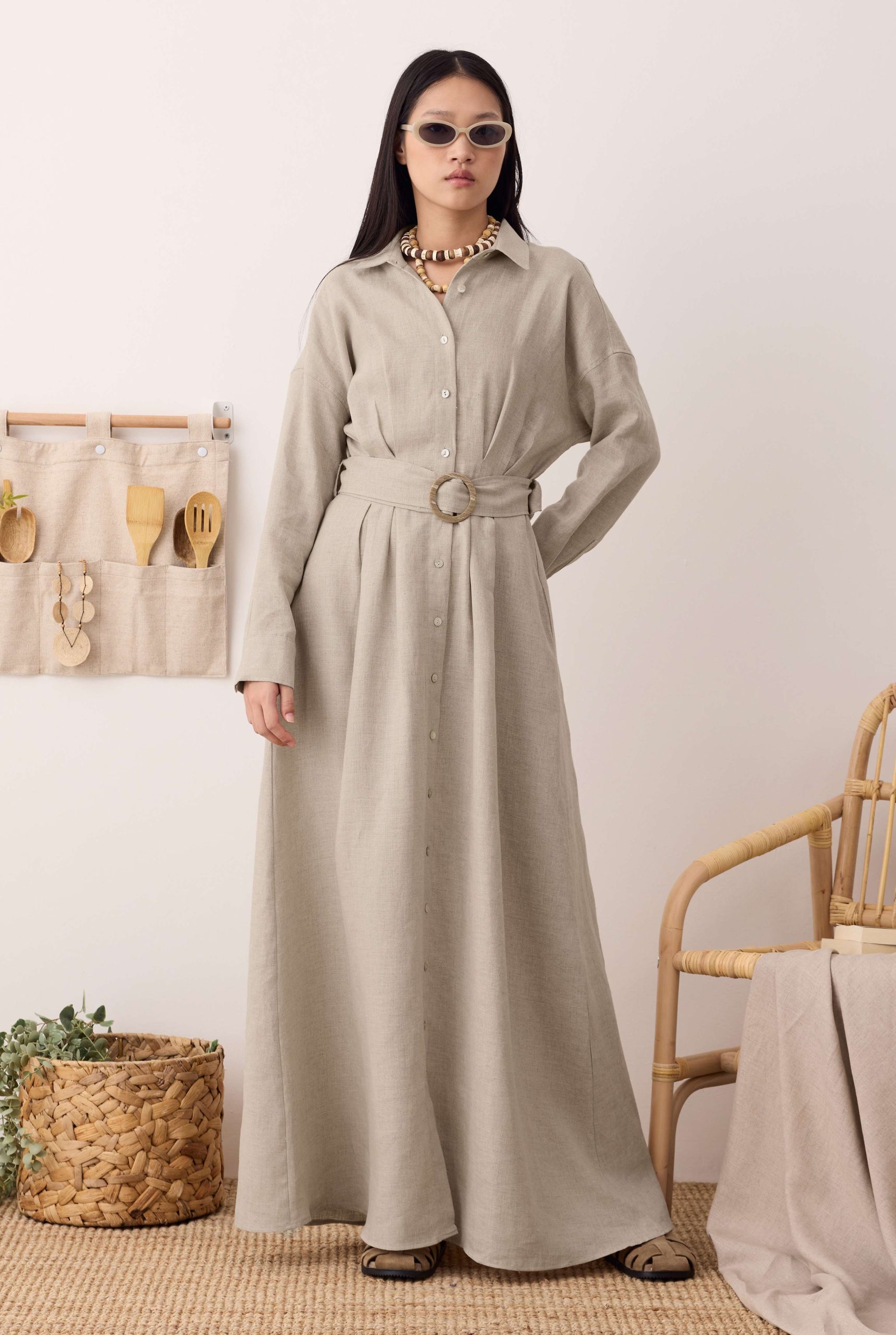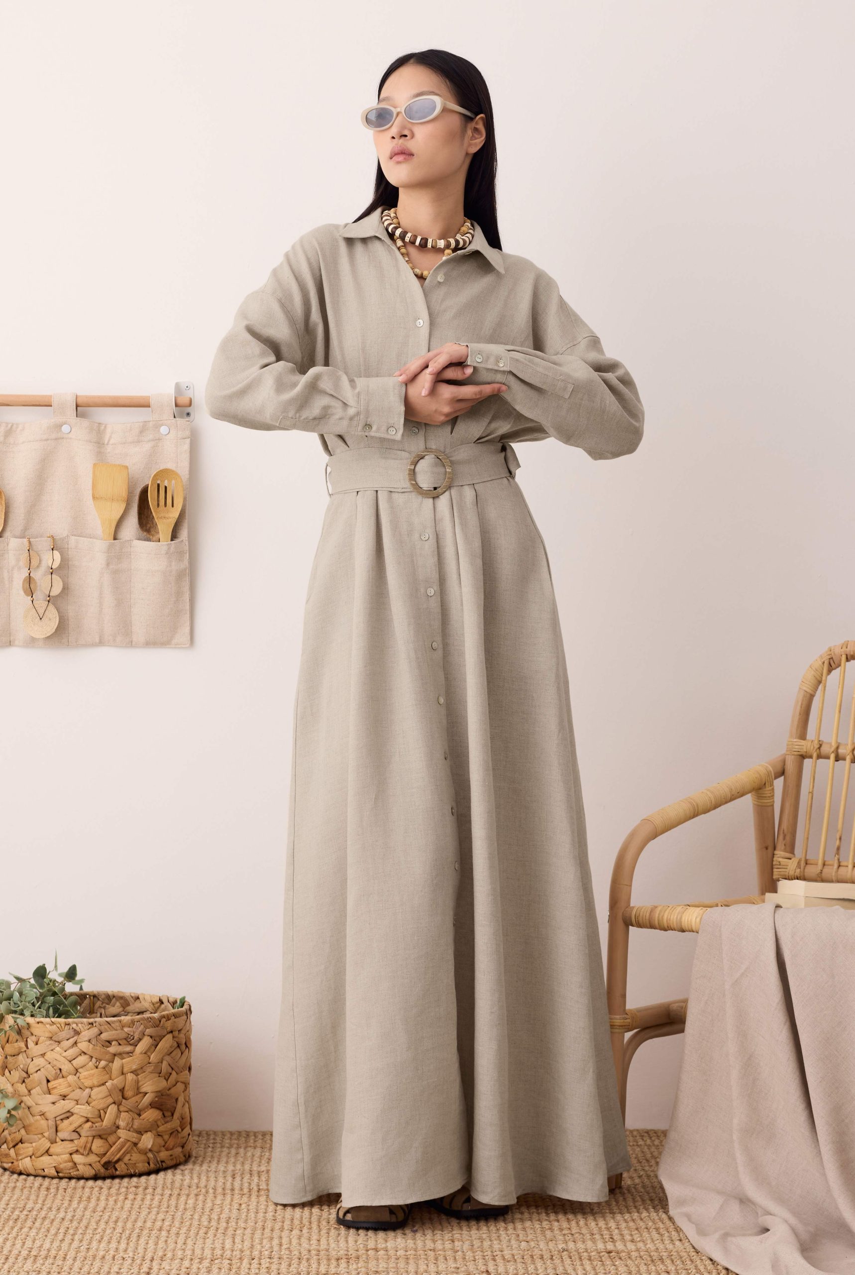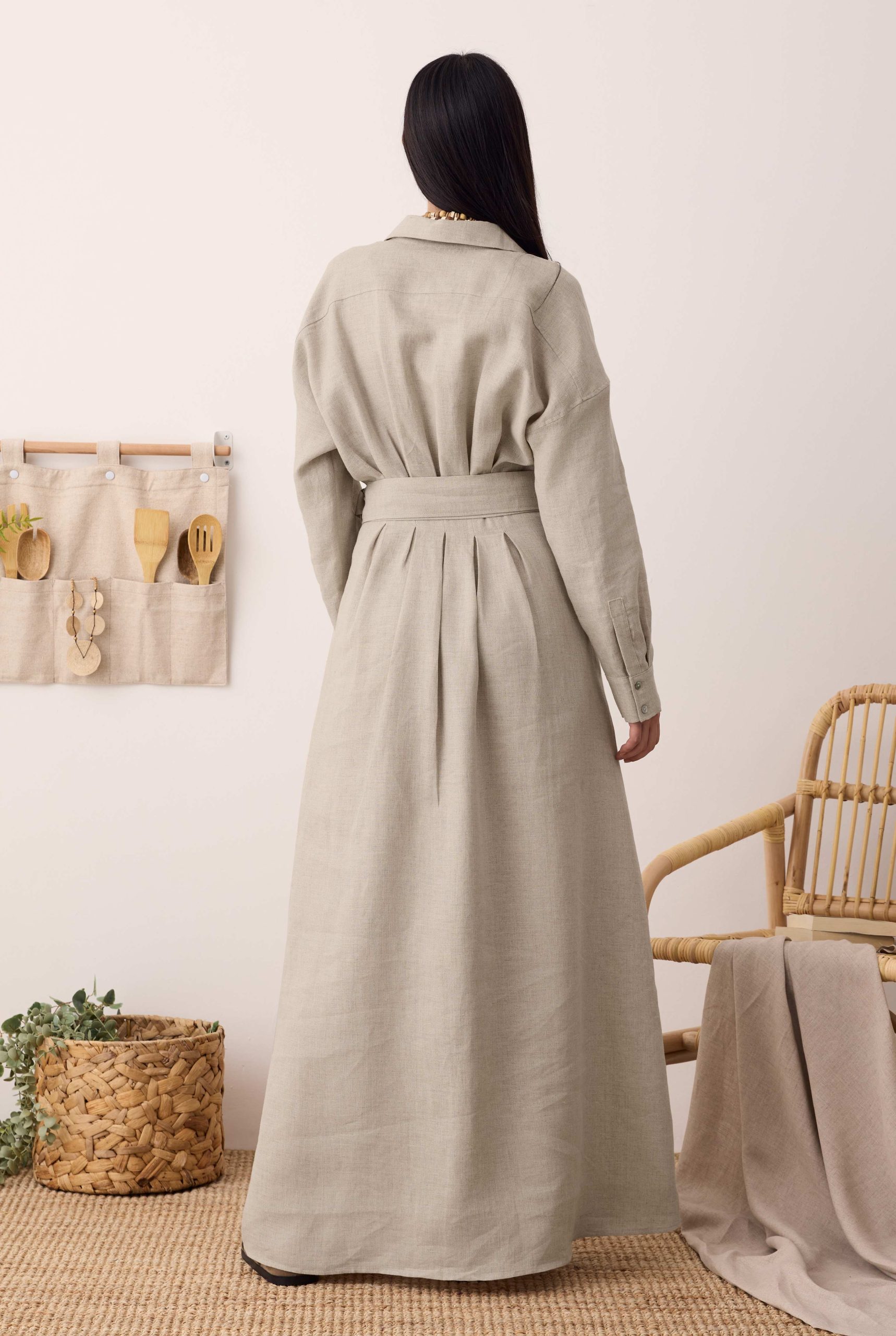 %100 keten kumaştan üretilen bu elbise, nefes alan yapısı sayesinde gün boyu konfor sağlar. Tam kalıp olup, genellikle giydiğiniz bedeni tercih edebilirsiniz. Doğru beden seçimi için bel ölçünüzü dikkate almanızı öneririz. Ürün astarsızdır ve kolsuz harici astar kullanımı gerektirir. 30 derecede hassas yıkama programında tek başına yıkamanızı tavsiye ederiz; aksi takdirde kumaşta solma veya kırışma oluşabilir. Kurutma makinesi kullanılmamalıdır. Tüm keten ürünlerimiz European Flax® sertifikalı olup, bu sertifika ketenin Avrupa’da sürdürülebilir tarım yöntemleriyle, yapay sulama veya GDO olmadan yetiştirildiğini ve çevreye duyarlı bir üretim sürecinden geçtiğini garanti eder. Ayrıca, kumaşın hammaddesinin kaynağının ve üretim sürecinin izlenebilir olduğunu teyit eder. Kullandığımız premium kalite keten lifleri, kumaşın hafifliğinden dokusuna kadar her detayda kendini hissettirir. Keyifle kullanmanızı dileriz… Boy: 150 cm (Ürün boyu üretimler arasında 1-5 cm değişiklik gösterebilir.) Kalıp Bilgisi: Göğüs/Bel/Basen/Pazu 36 Beden: 92 cm/78 cm/142 cm/38 cm 38 Beden: 96 cm/82 cm/146 cm/40 cm Manken Ölçüleri: Boy: 176 cm Göğüs: 80 cm Bel: 61 cm Basen: 90 cm Mankenin Üzerindeki Beden: 36