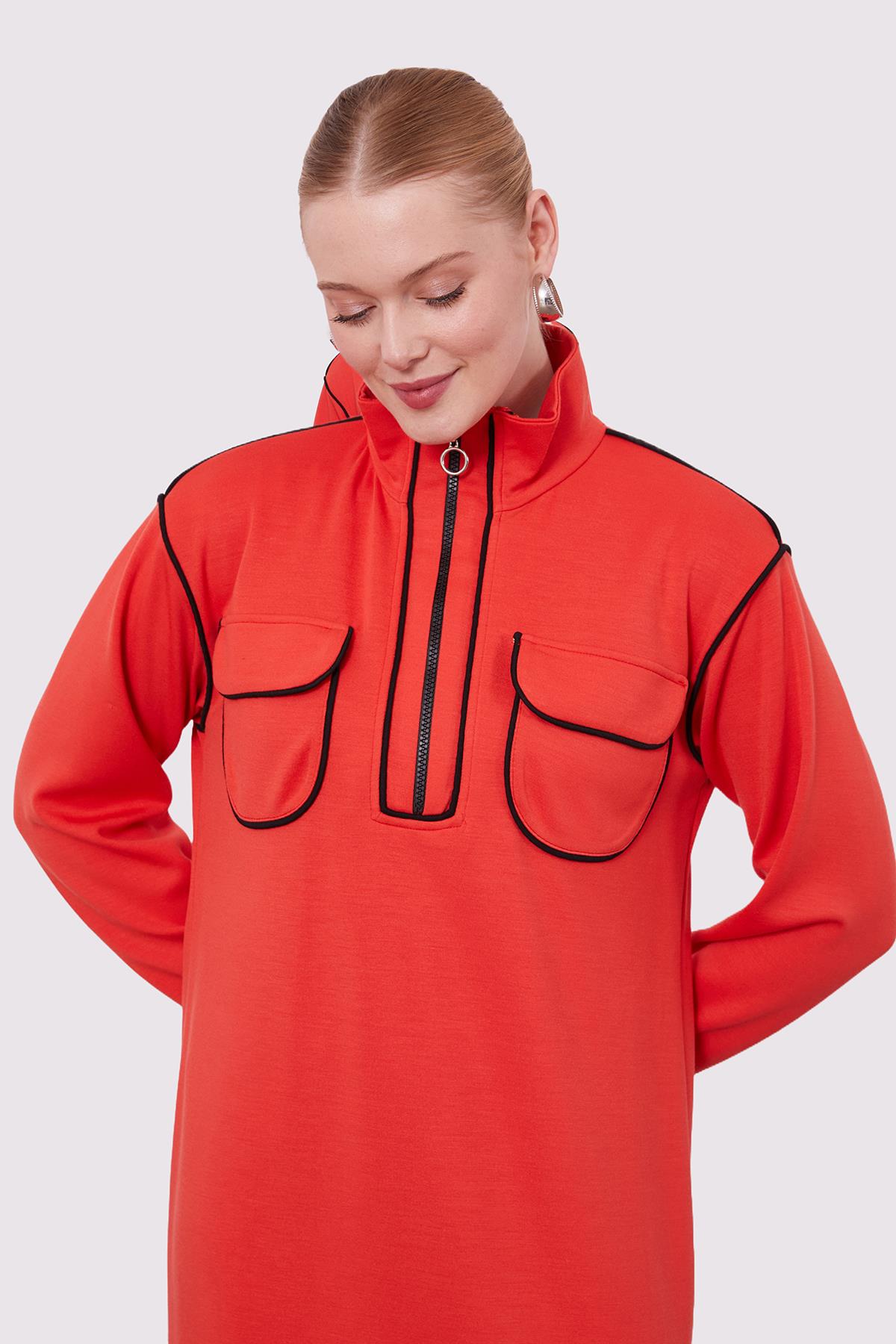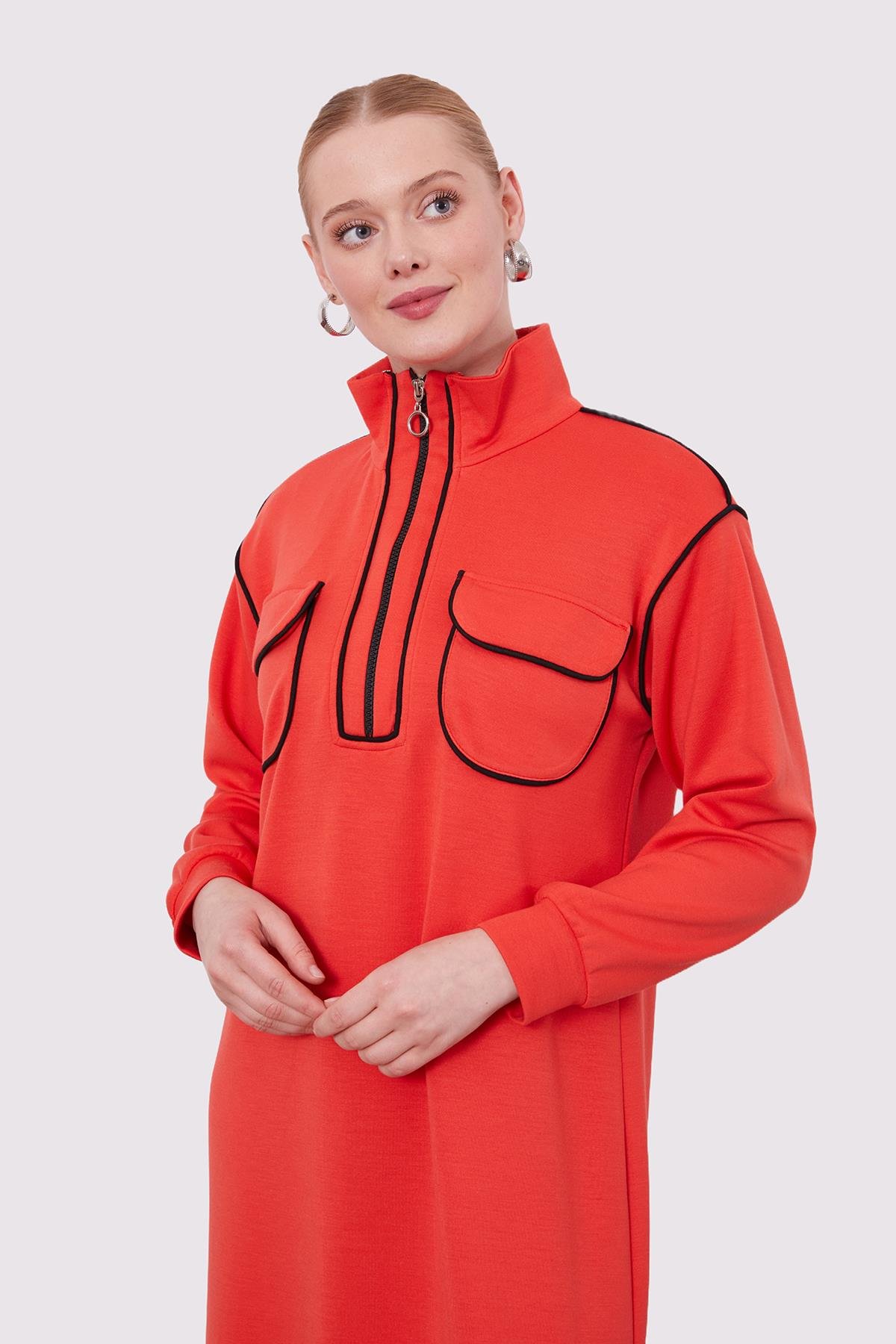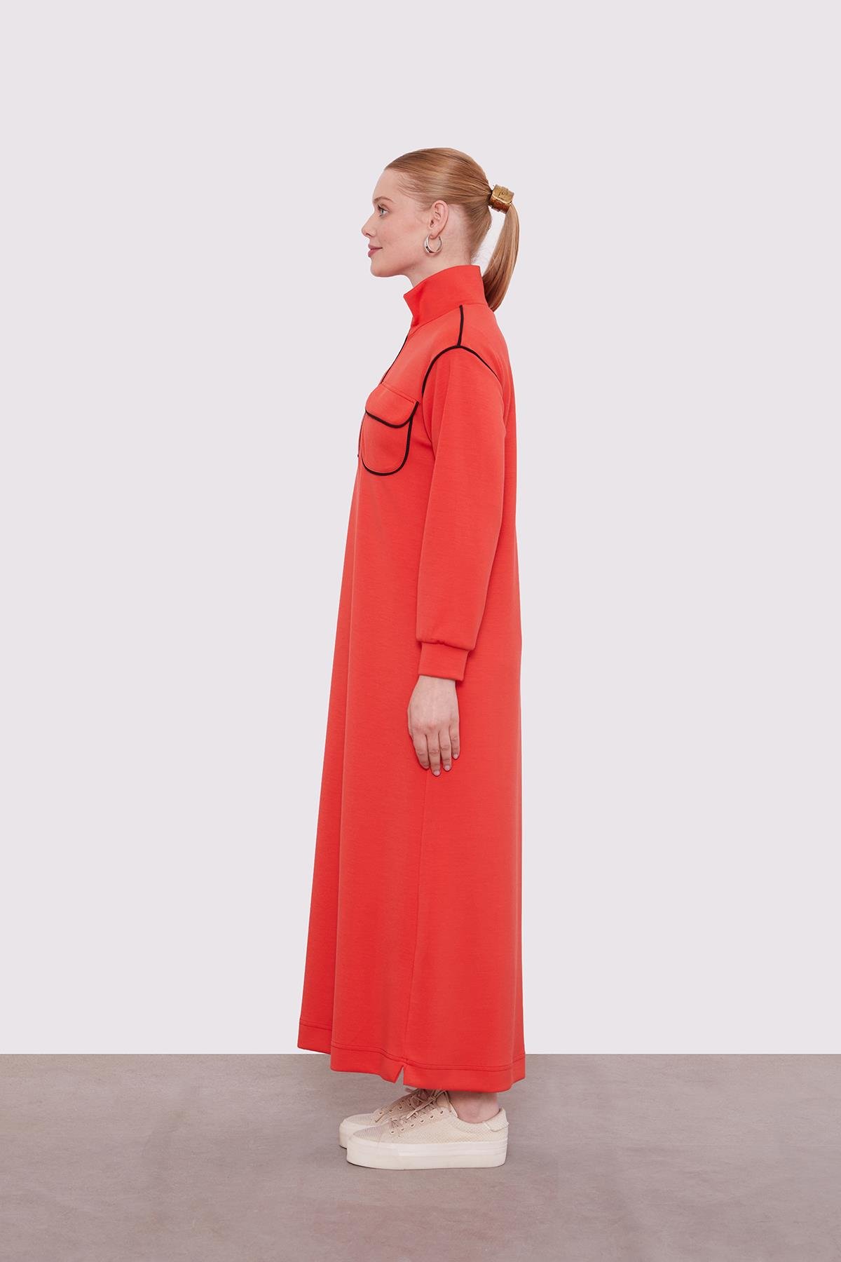 Çizgi cep detaylı elbise zarif tasarımıyla günlük şıklığı modern bir dokunuşla buluşturan özel bir parçadır. Elbisenin ön kısmındaki çizgi formundaki cep detayları modele hem dinamizm hem de özgün bir stil kazandırıyor. Dökümlü kumaşı sayesinde gün boyu rahat hareket etmenize olanak tanıyor. Vücuda uyum sağlayan yapısı estetik bir duruş sunuyor. Kolayca aksesuarla tamamlanabilen bu model dolabınızdaki zamansız parçalar arasında yer almaya adaydır. Zarif bir şal topuklu ayakkabı ya da desenli eşarp modelleri ile kombinleyerek hem günlük hayatınızda hem de özel davetlerde göz alıcı bir stil oluşturabilirsiniz.