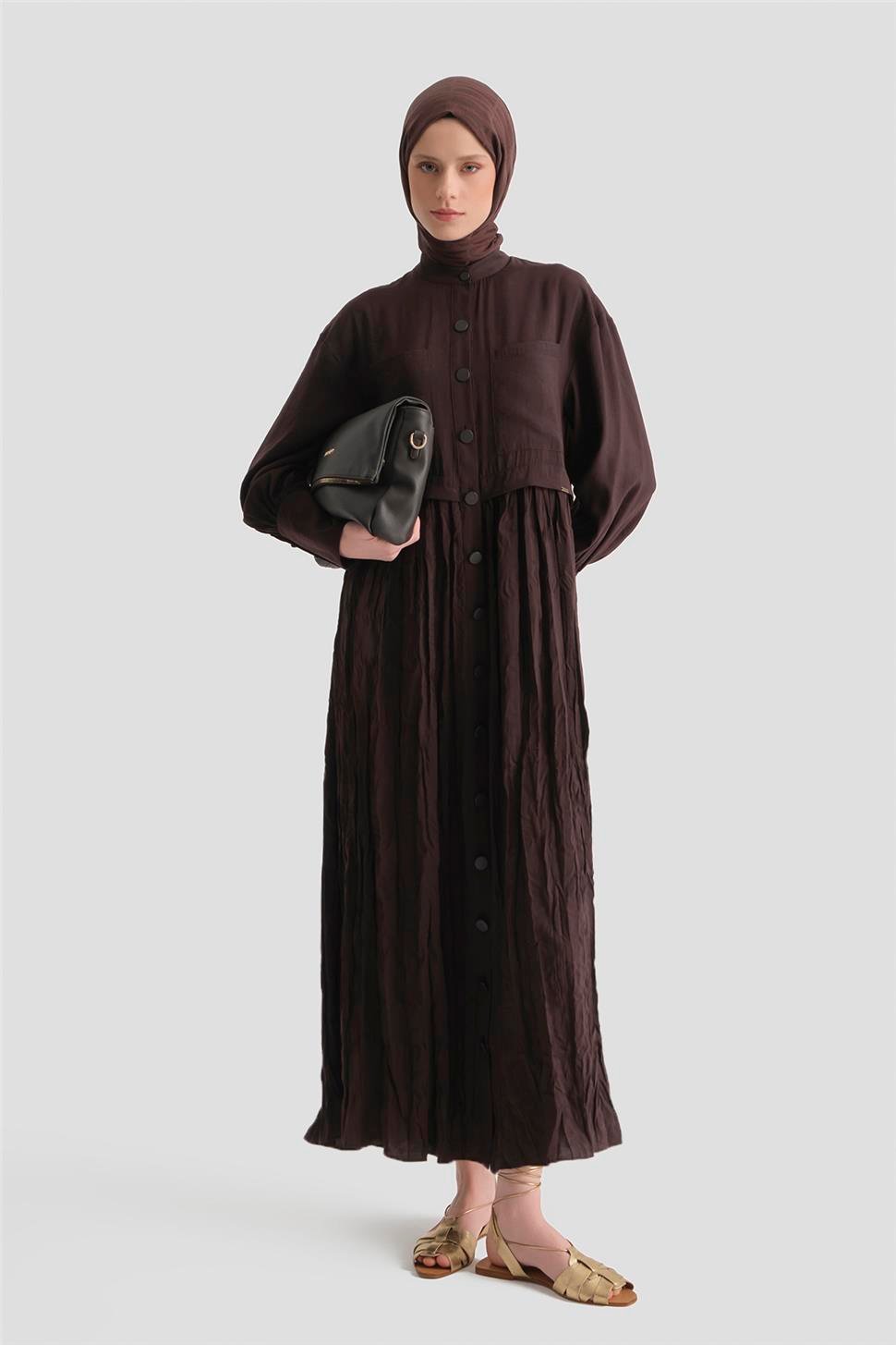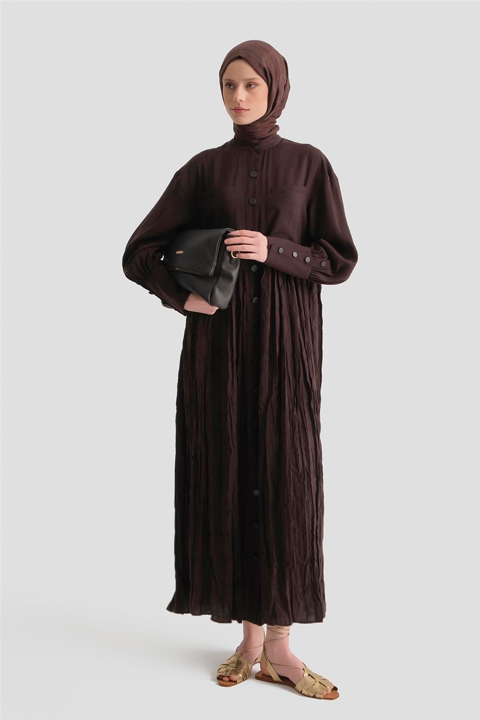 Kırışık Efektli Modal Elbise Acı Kahve
