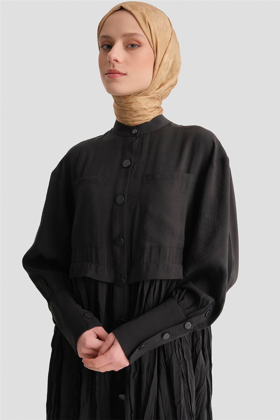 Kırışık Efektli Modal Elbise Siyah