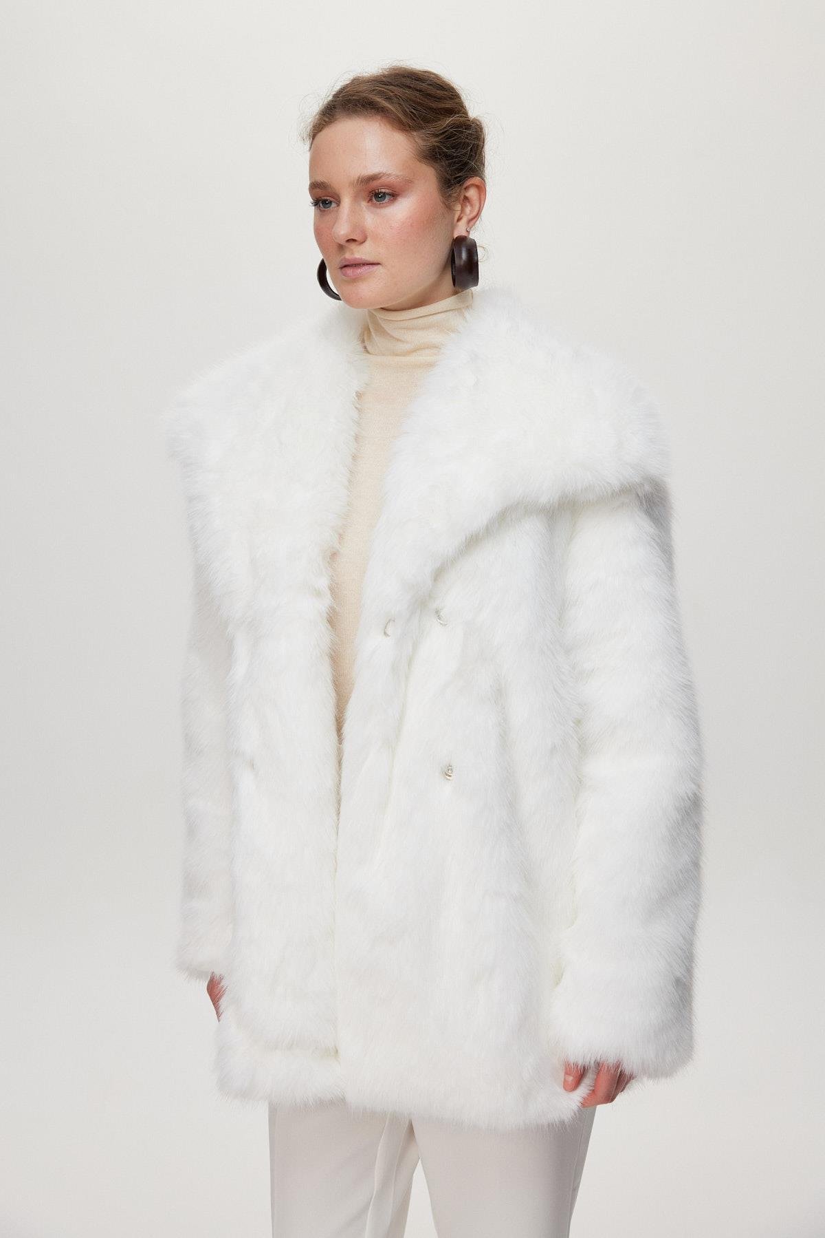 Kısa Kürk Beyaz Kaban 13828
