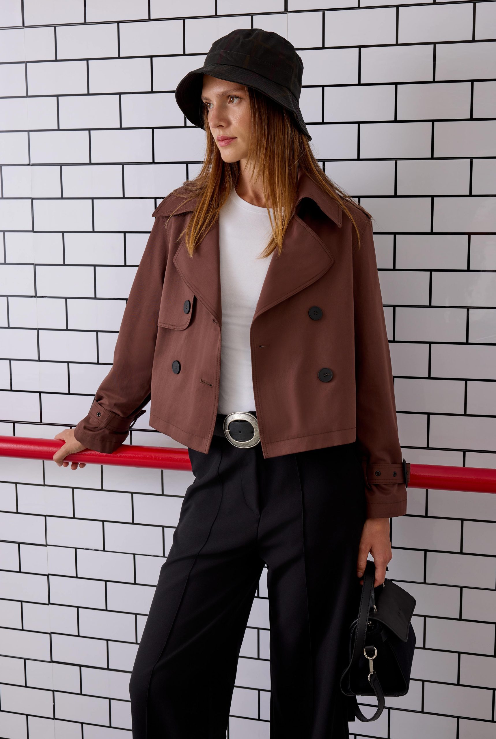 %60 Pamuk ve %40 Polyester karışımlı kumaştan üretilmiştir. Pamuk içeriği sayesinde nefes alan ve konforlu bir kullanım sunarken, polyester dokusu ürüne ekstra dayanıklılık katar. Böylece trençkot, yıpranmalara karşı daha dirençli olur ve formunu uzun süre korur. Ayrıca polyester içeriğe yaptırdığımız su itici özellik, trençkotlarda suya karşı dayanıklı bir özellik kazandırır.Ürün hafif bol bir kalıba sahiptir. Mankenin üzerindeki beden 36’dır. Daha fit bir görünüm isteyenler bir beden küçük tercih edebilir.Kumaş bakım notu: Pamuk karışımlı kumaşların uzun ömürlü kullanımı için düşük ısıda hassas programda yıkanması önerilir. Askıda kurutulmalıdır. Orta ısıda buharlı ütü yapılabilir.Boy: 51,5 cm (Ürün boyu üretimler arası 1-5 cm değişebilir.)Kalıp Bilgisi:GöğüsBasen Kol BoyuPazu36 Beden: 106 cm 102 cm 57 cm 44 cm 38 Beden: 110 cm 106 cm 58 cm 46 cm 40 Beden: 114 cm 110 cm 59 cm 48 cm 42 Beden: 118 cm 114 cm 60 cm50 cm Manken Ölçüleri:Boy: 174 cm Göğüs: 83 cm Bel: 60 cm Basen: 90 cm Mankenin Üzerindeki Beden: 36