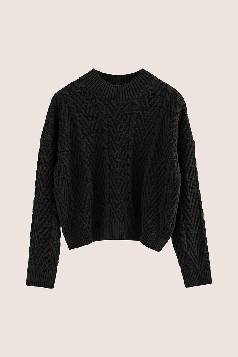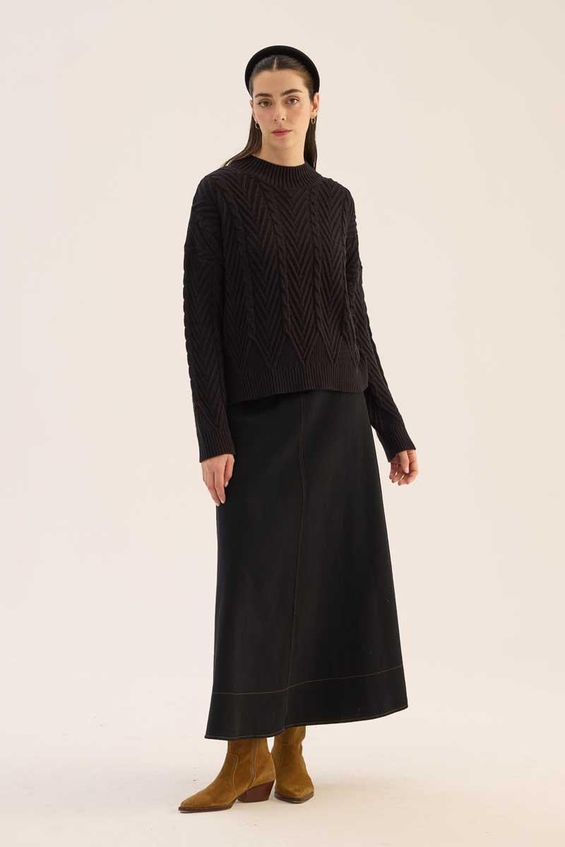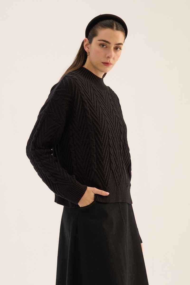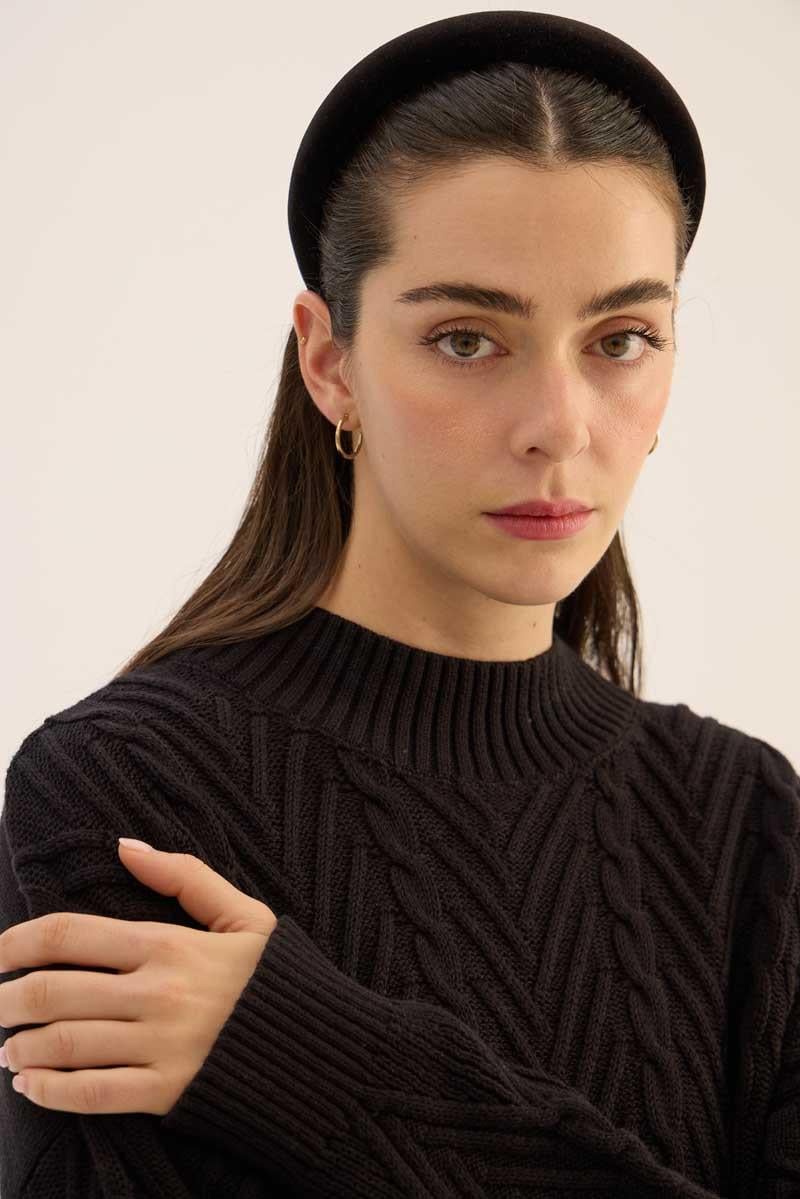 Kısa Verev Motifli Kazak Siyah