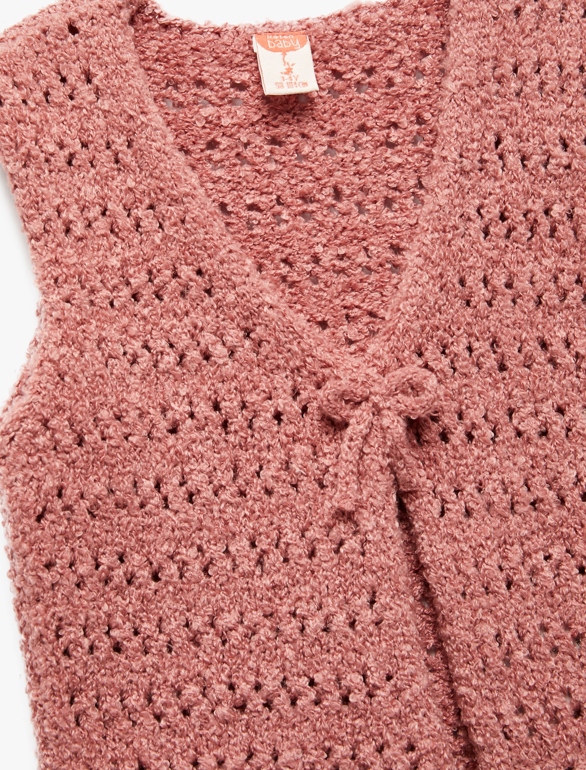 Sevimli triko yelek V yaka kesimi sayesinde kolayca giyilip çıkarılabilirken bağlama detayı ile sevimli bir görünüm kazanıyor. Miniklerin gardırobuna renk katan triko yelek, bol kalıbıyla konfor sağlıyor ver her mevsim kullanılabilir bir parça olarak ne çıkıyor.