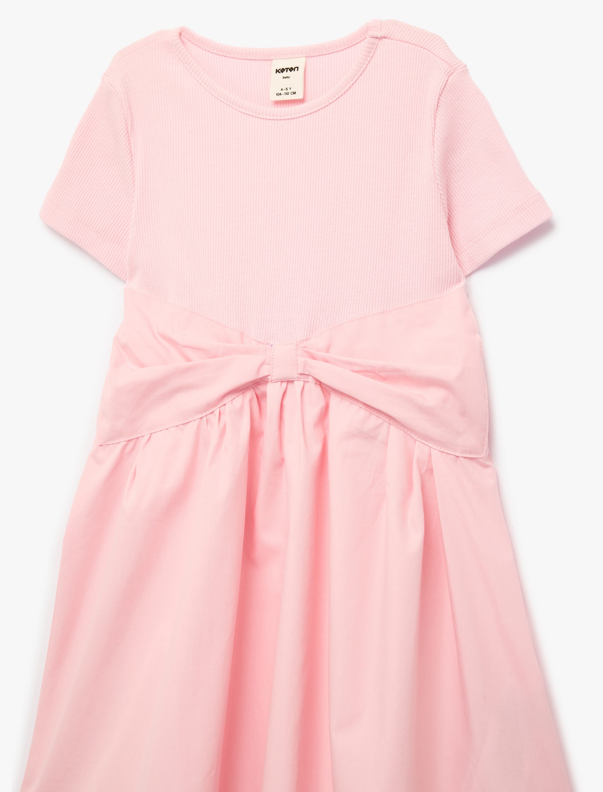 Kız Bebek Kısa Kollu Bisiklet Yaka Pamuklu Kaşkorse Fiyonklu Elbise