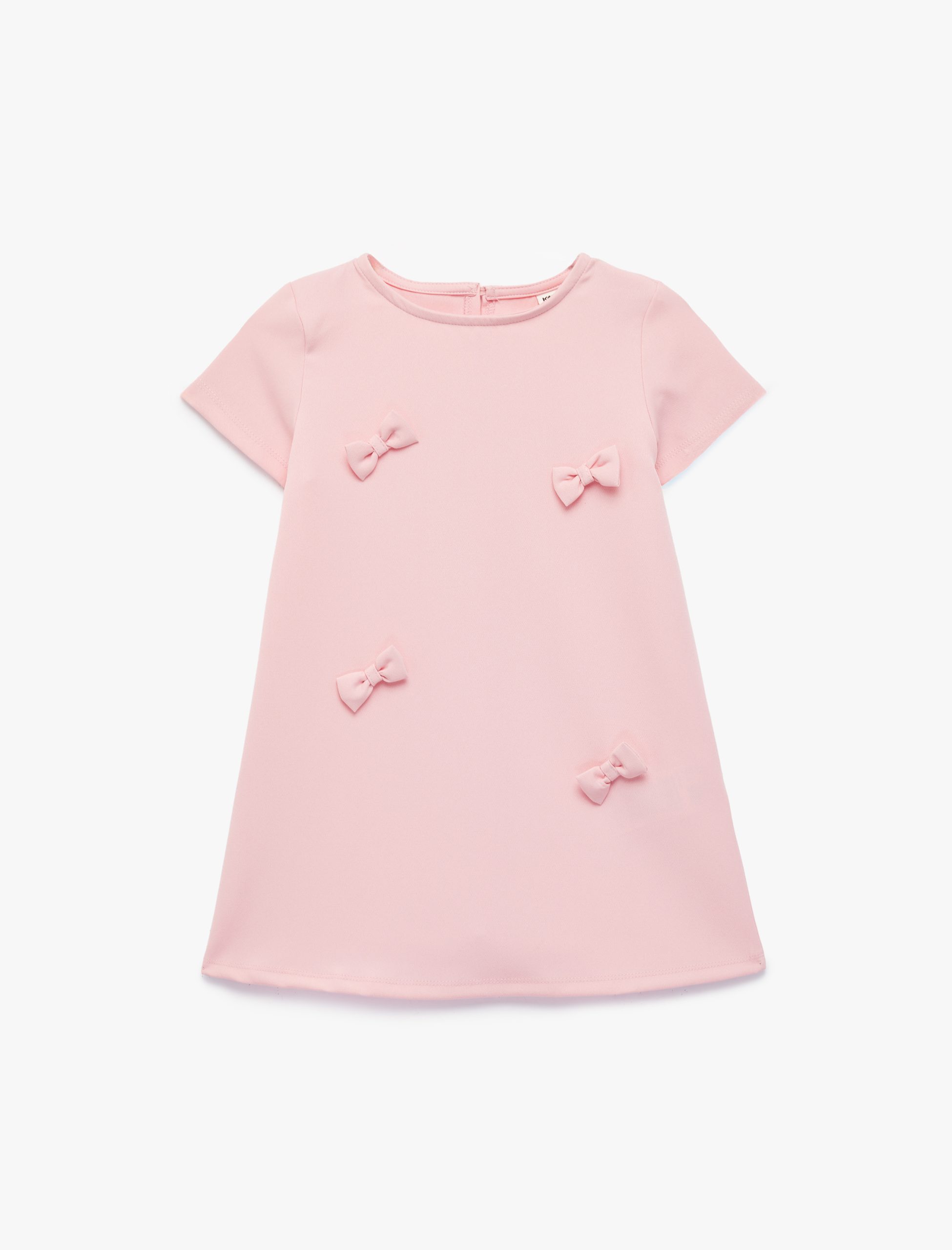 Kız Bebek Kurdele Detaylı Kısa Kollu Bisiklet Yaka Elbise