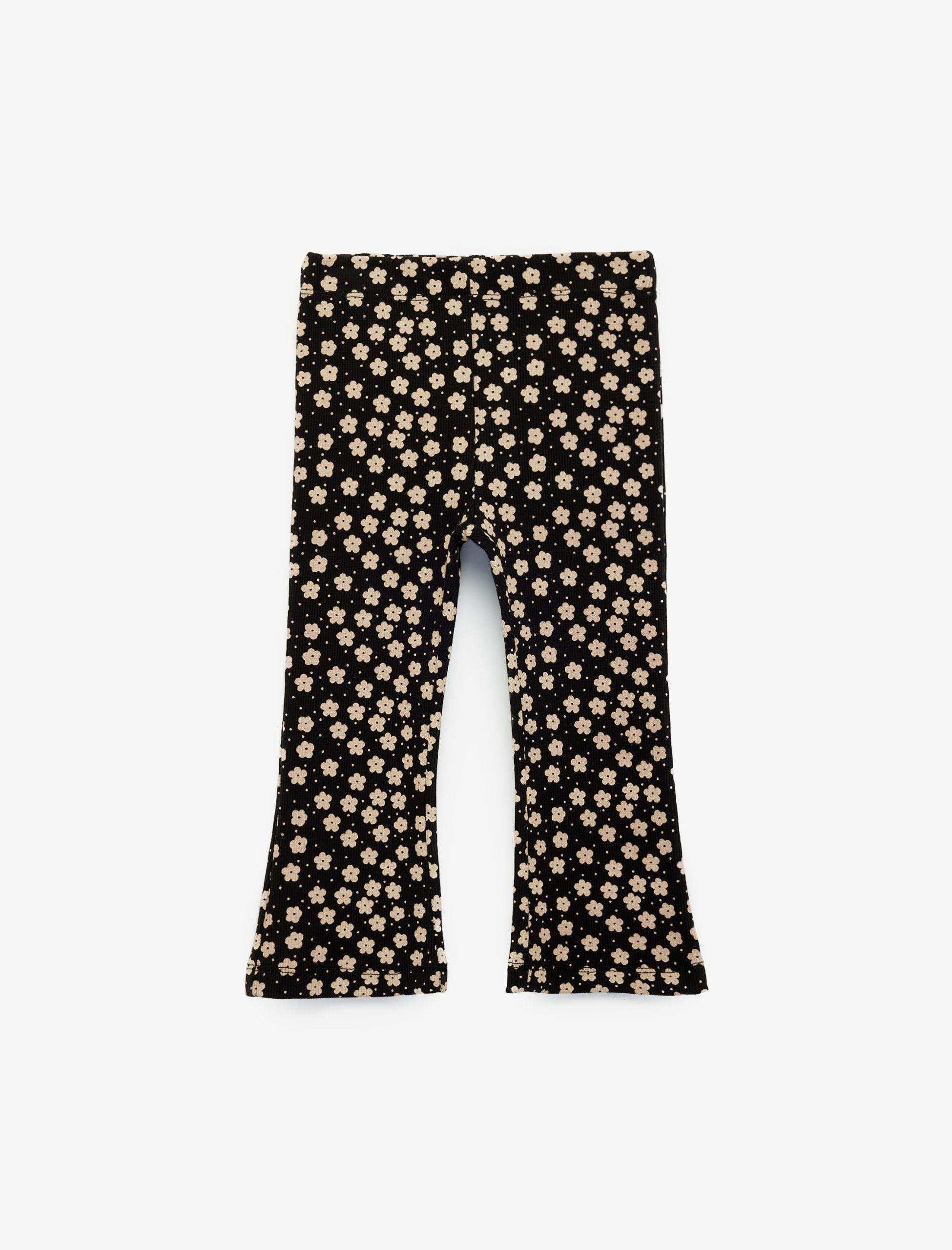 Kız Bebek Pamuk Karışımlı Çiçekli İspanyol Paça Tayt