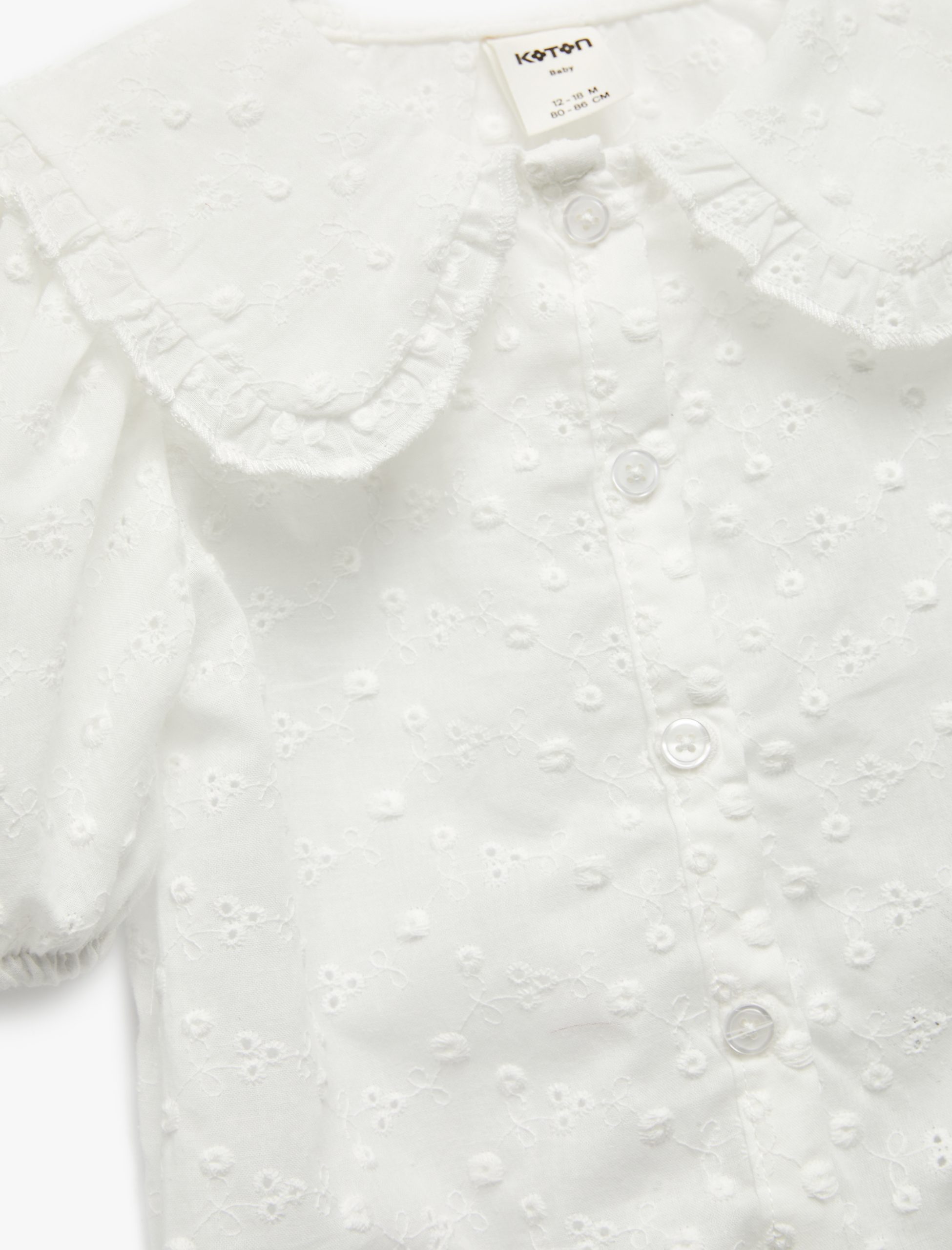 Kız Bebek Pamuklu Kısa Kollu Bebe Yaka Brodeli Gömlek