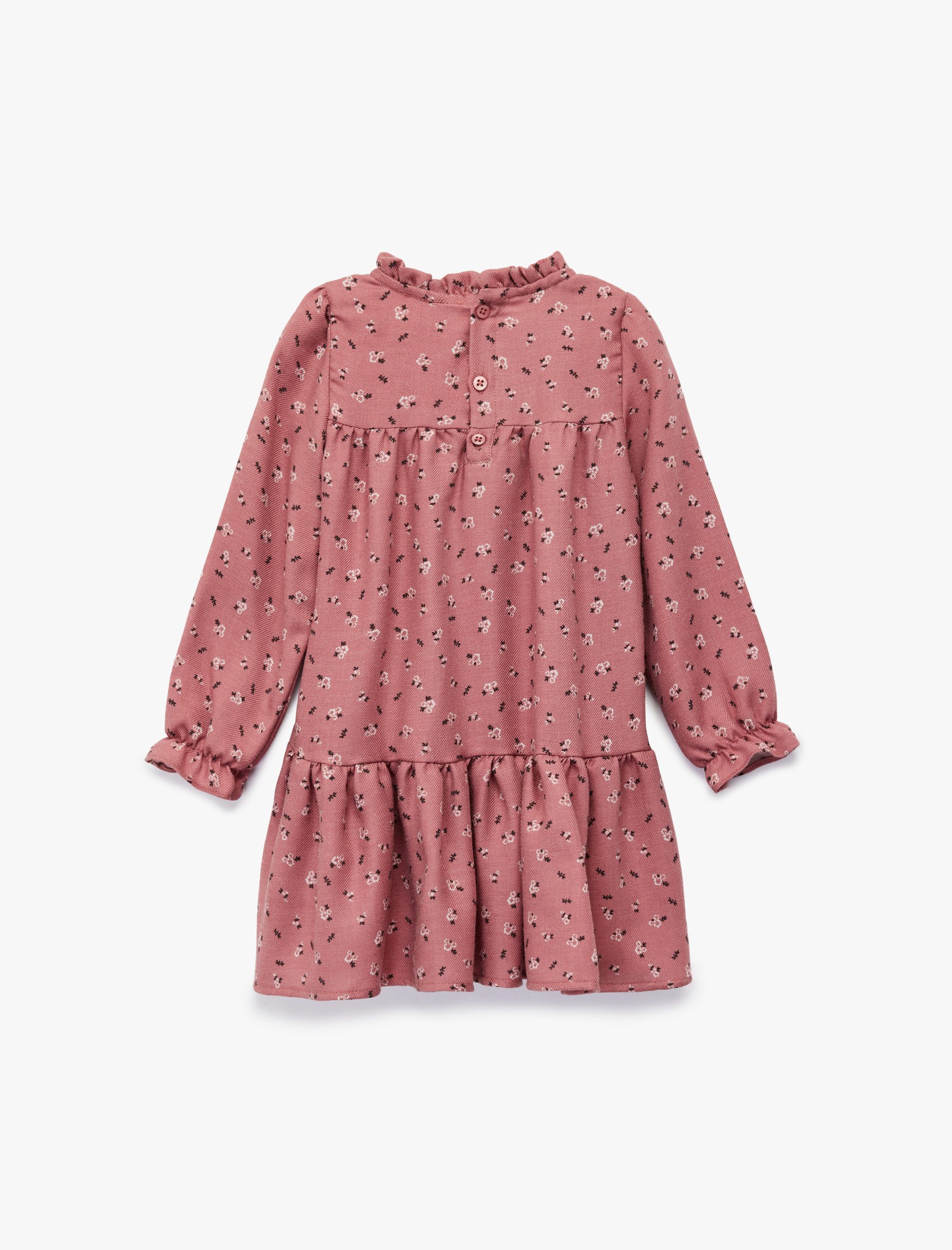 Kız Bebek Uzun Kollu Dik Yaka Çiçek Desenli Viskon Elbise
