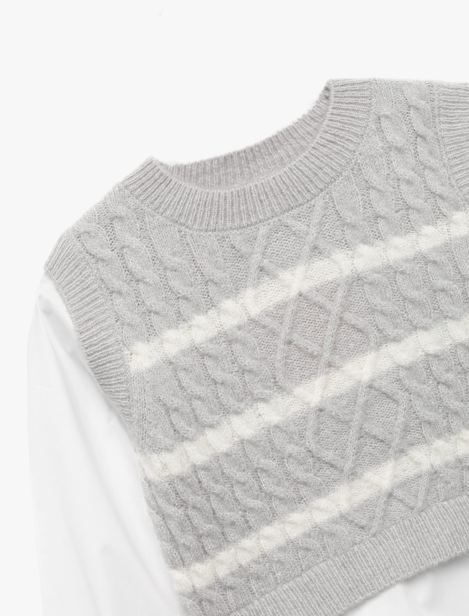 Kız Bebek Uzun Kollu Tişört Detaylı Bisiklet Yaka Triko Kazak