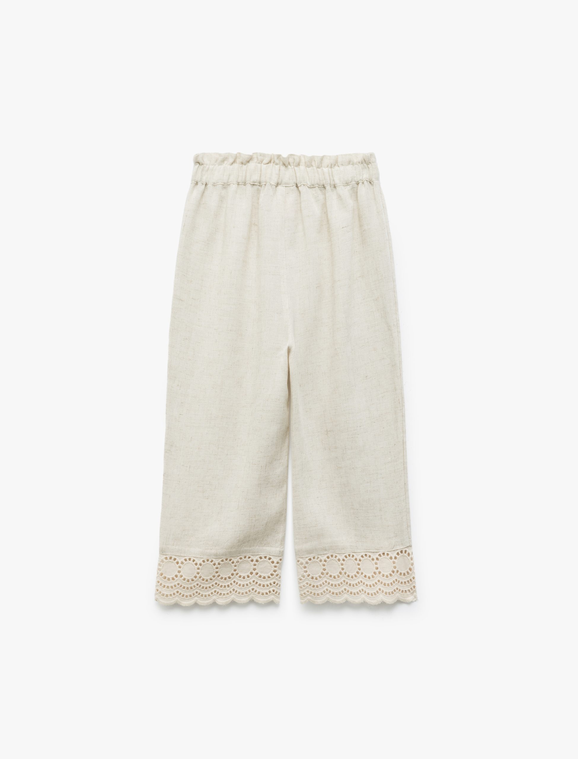 Kız Bebek Viskon ve Keten Karışımlı Beli Lastikli Brodeli Pantolon