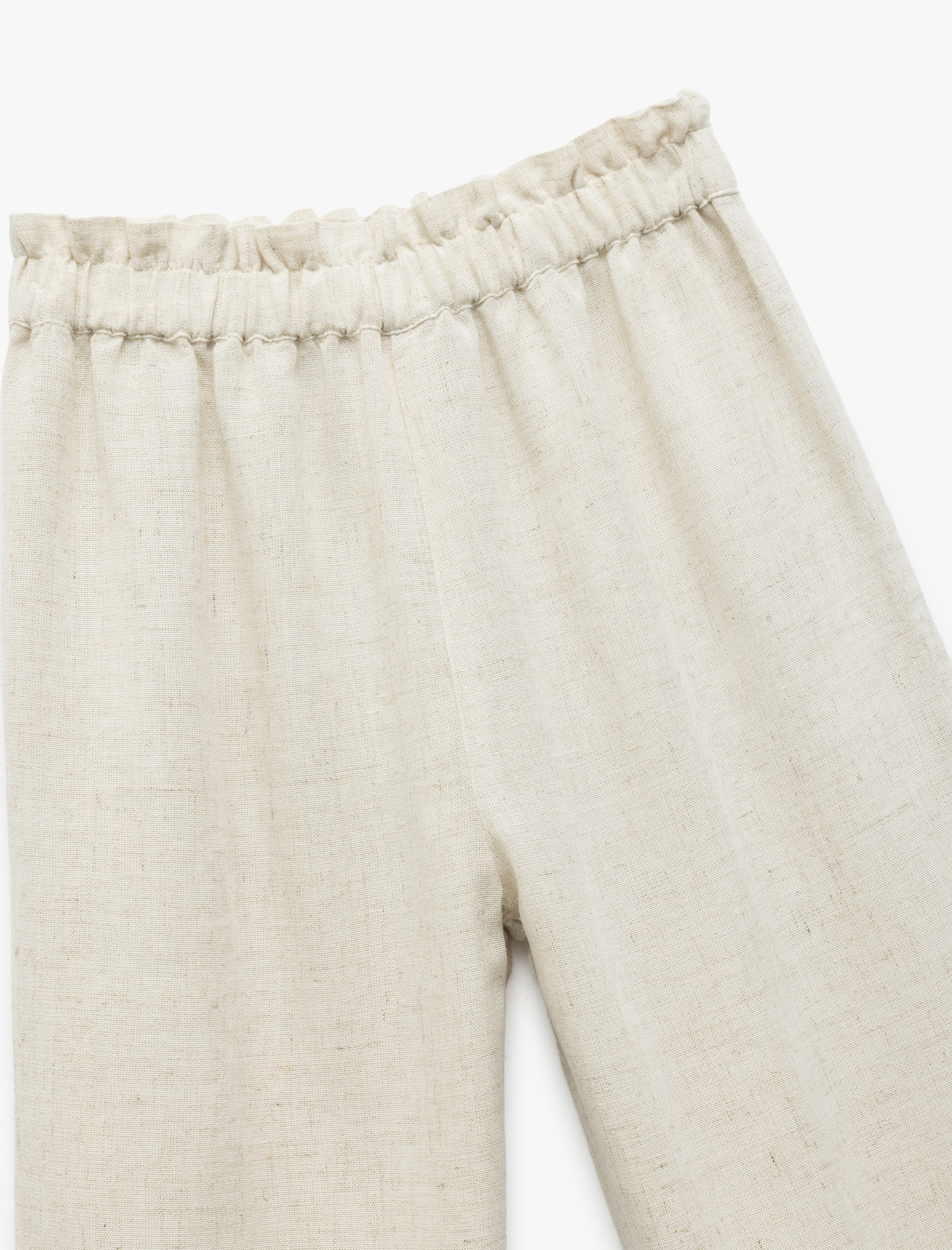Keten ve viskon karışımlı pantolon, minikler için konforlu bir seçenek sunuyor. Beli lastikli yapısıyla rahatlık sağlayan pantolon, yumuşak dokusuyla hareket kolaylığı sağlıyor ve yaz ayları için ideal bir tercih oluşturuyor.