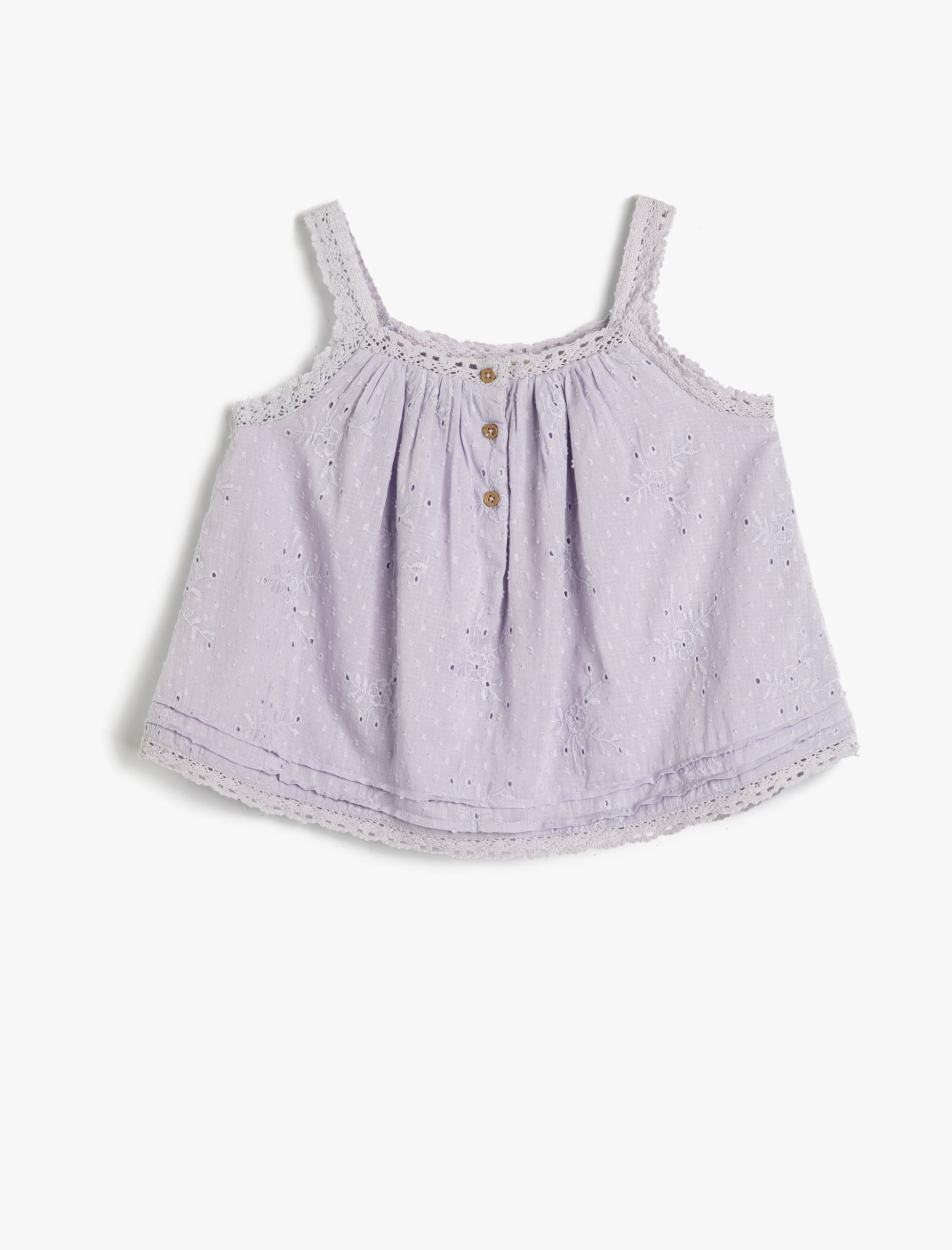 Kız Çocuk Askılı Bluz Çiçek Brodeli Düğmeli Pamuklu Astarlı