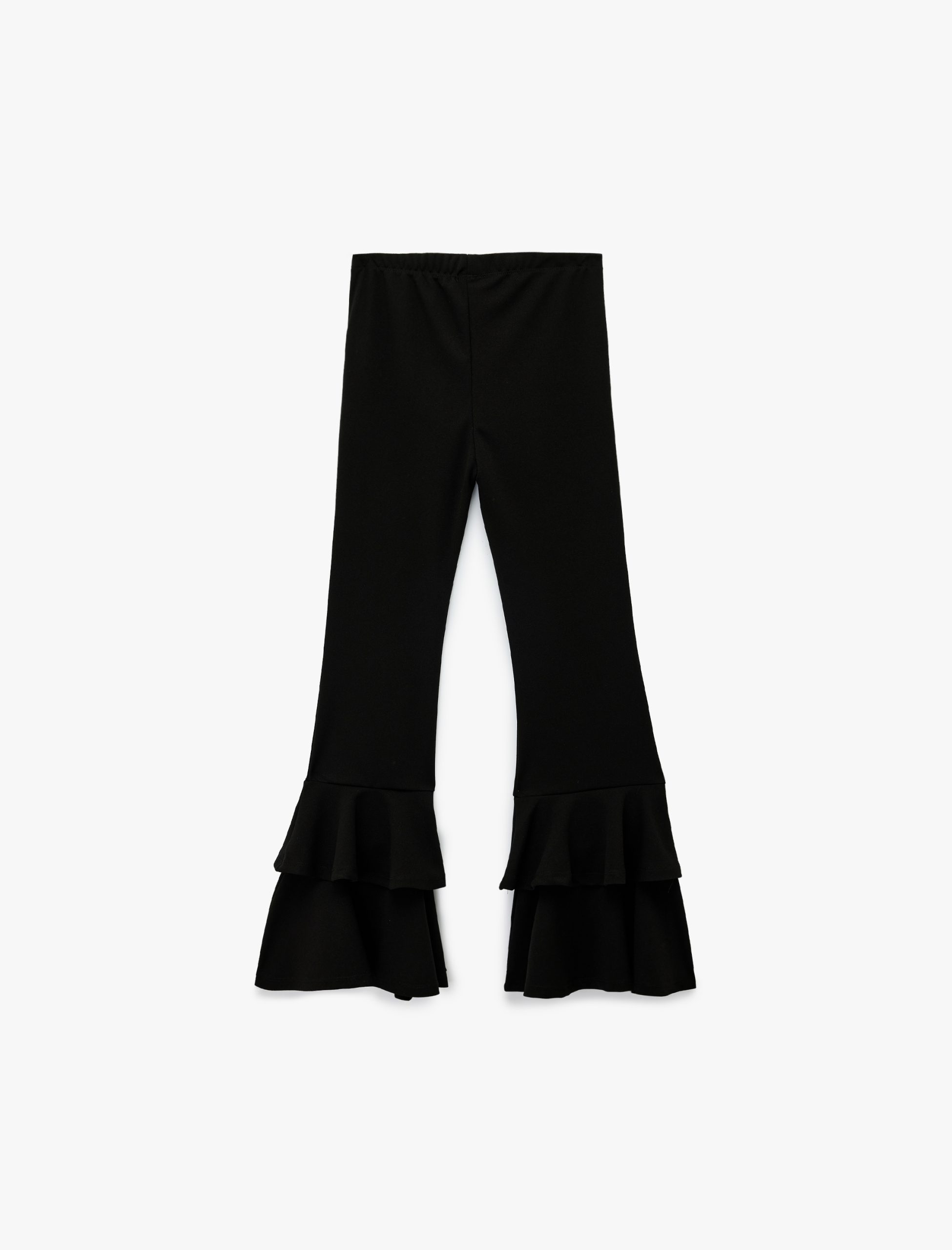 Kız Çocuk Beli Lastikli Fırfır Detaylı İspanyol Paça Pantolon