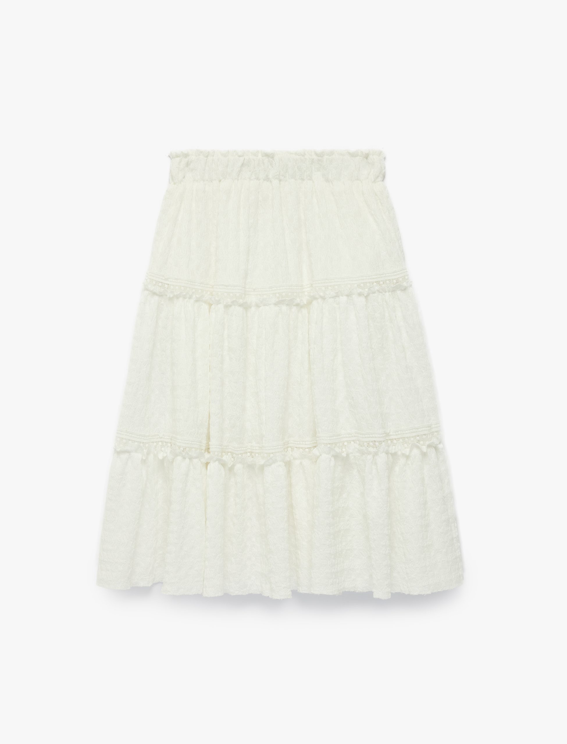 Kız Çocuk Dantel Detaylı A Kesim Bürümcük Katlı Midi Etek