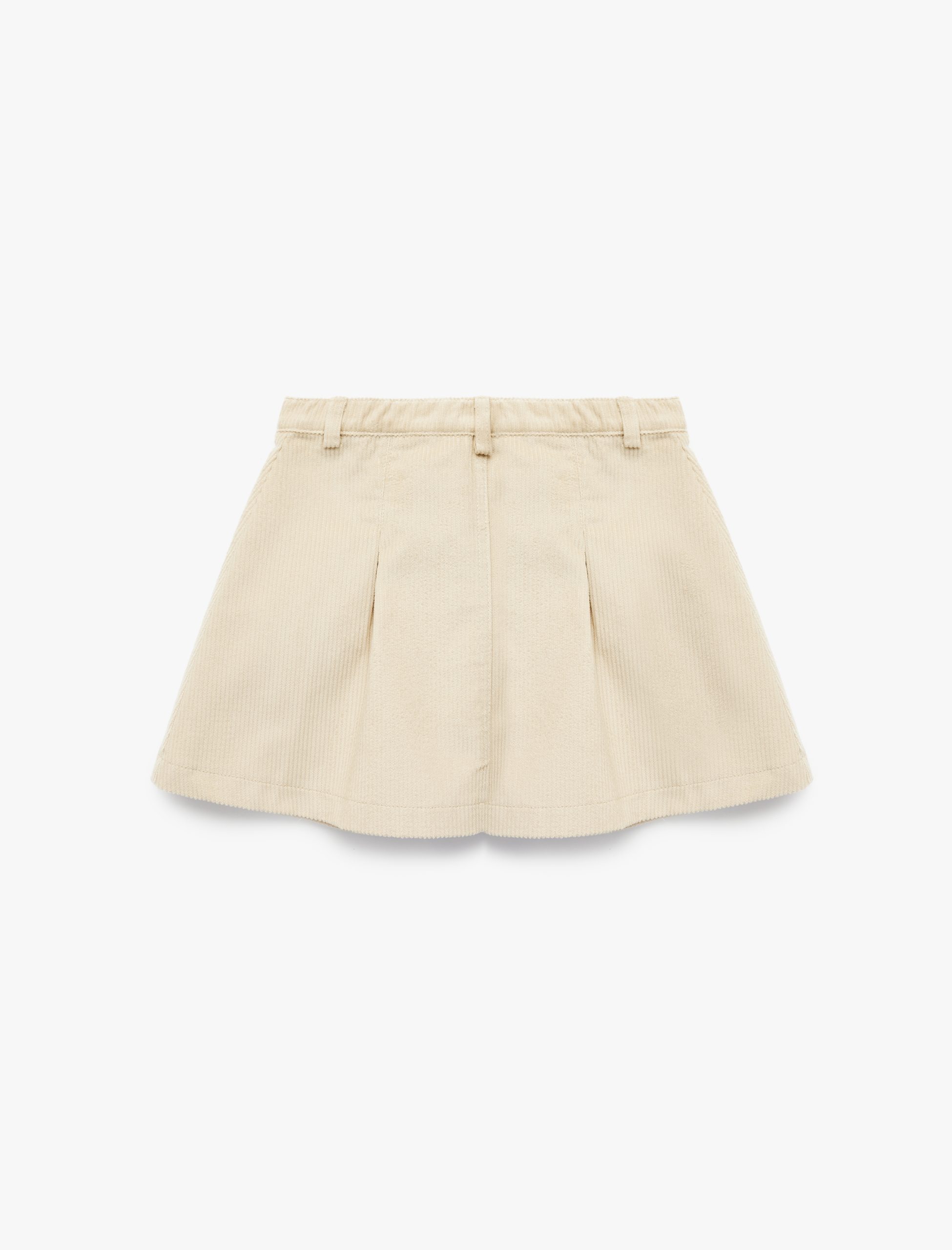 Kadife pileli etek, çocukların enerjisine eşlik ediyor. A kesim tasarımı ve diz üstü boyu ile hareket özgürlüğü sağlıyor. Pileli detayları ile çocukların dolaplarında sevimli bir seçenek sunuyor. Belindeki düğme detayları ise etek tasarımına modern bir dokunuş katıyor. Enerjik ve şık kombinler için ideal bir parça olarak öne çıkıyor.