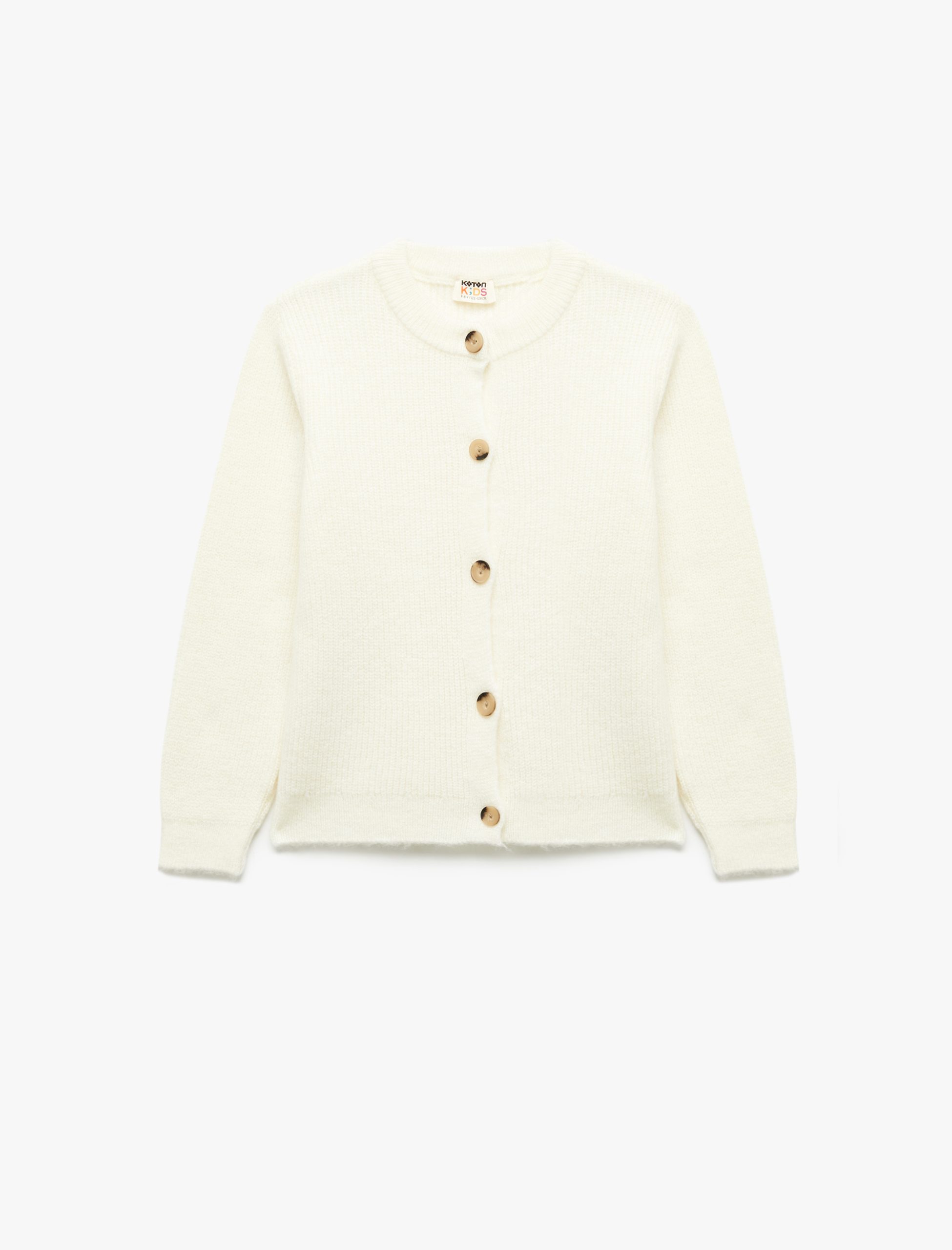 Kız Çocuk Düğmeli Uzun Kollu Yuvarlak Yaka Basic Triko Hırka