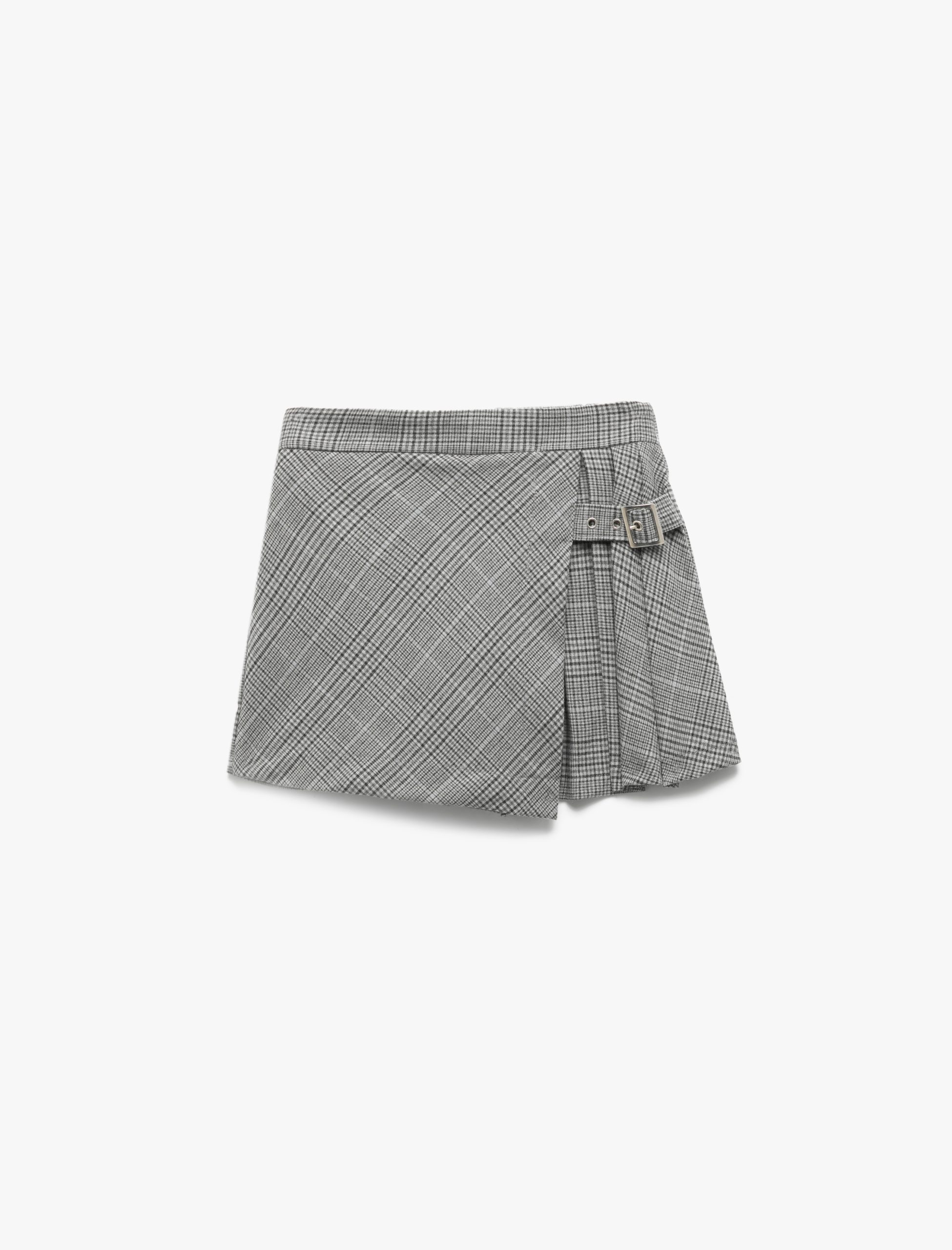 Kız Çocuk Ekose Desenli Kemer Detaylı Pileli Şort Etek