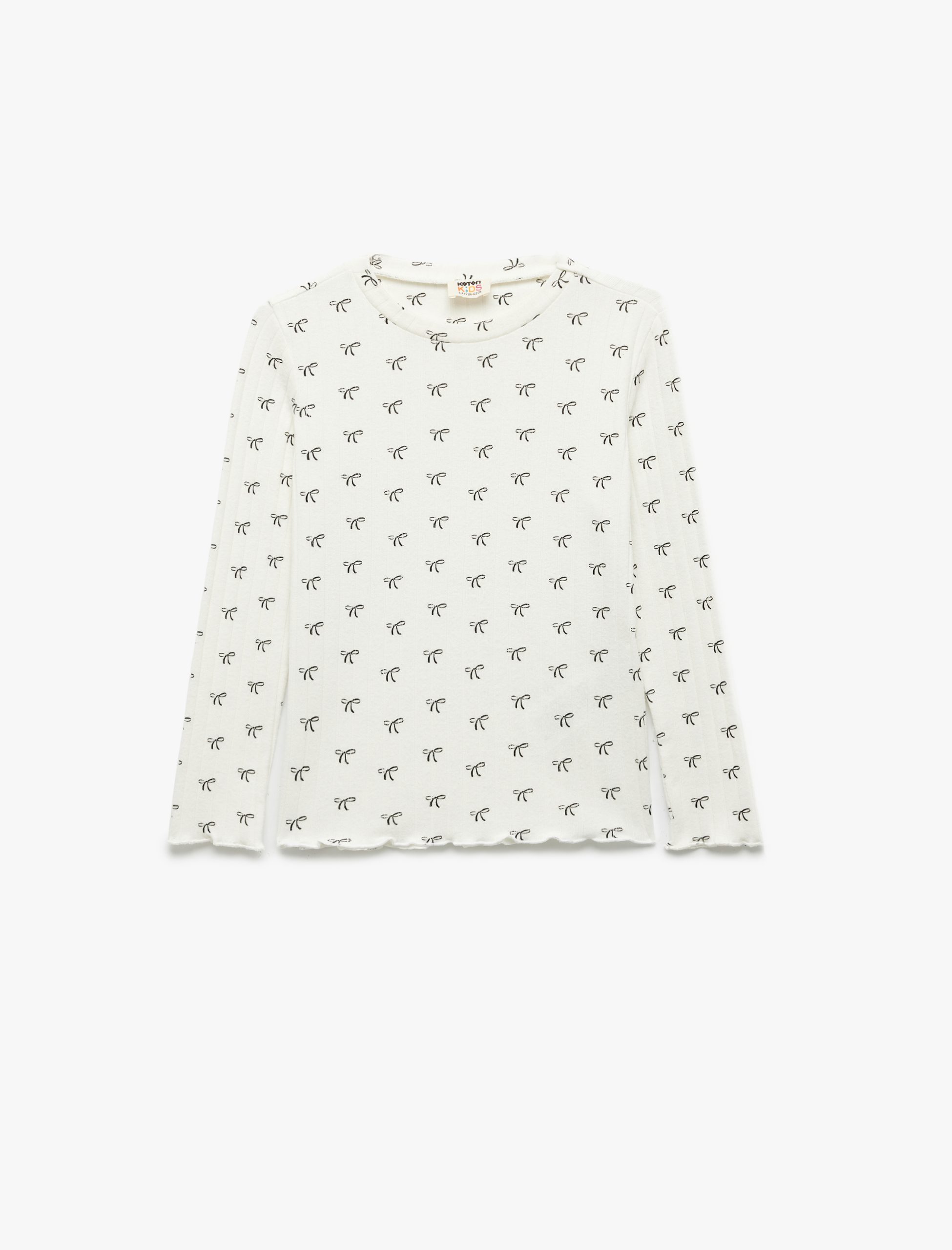 Kız Çocuk Kaşkorse Yumuşak Dokulu Uzun Kollu Bisiklet Yaka Fiyonk Baskılı Tişört