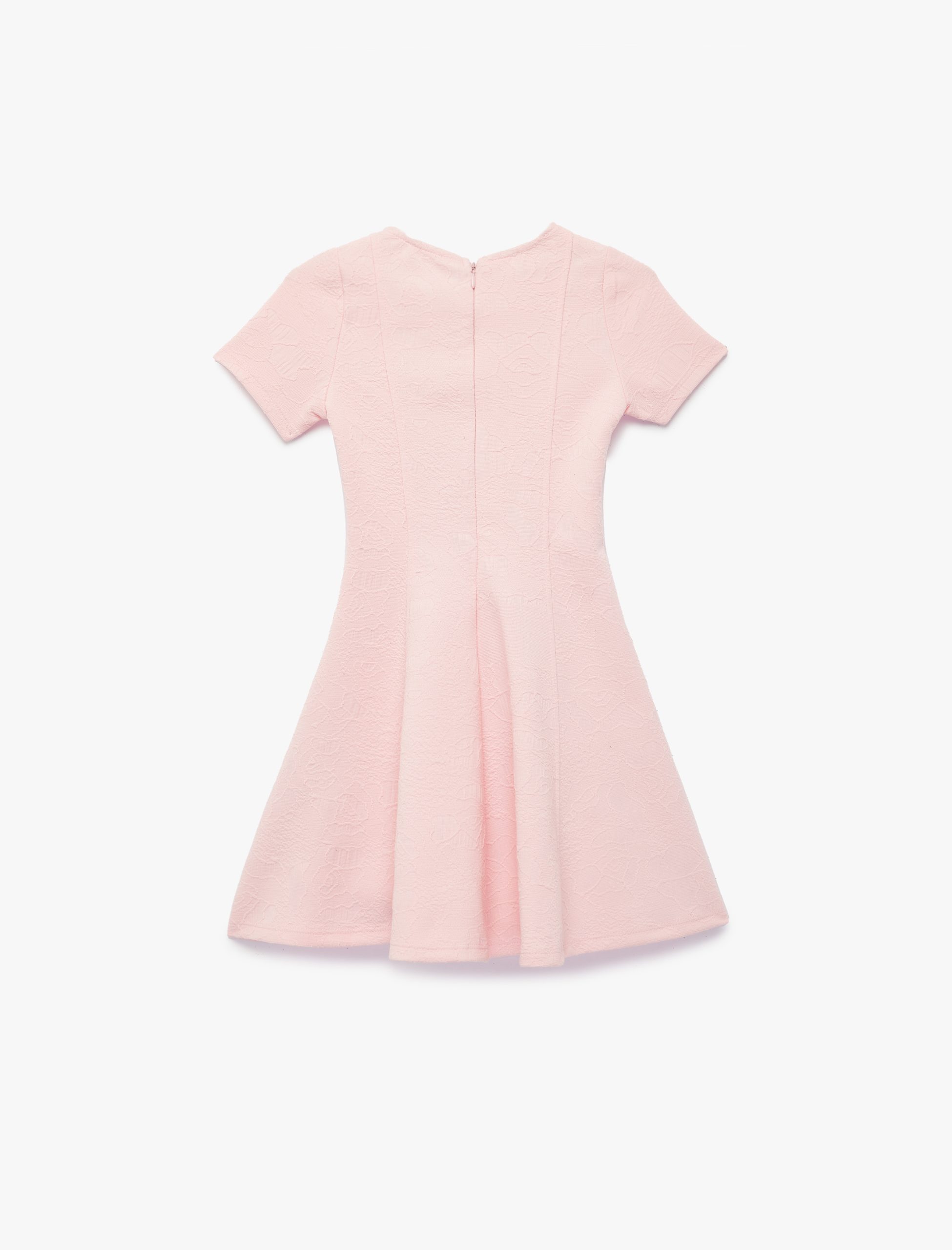Kız Çocuk Kısa Kollu Bisiklet Yaka Pileli Elbise