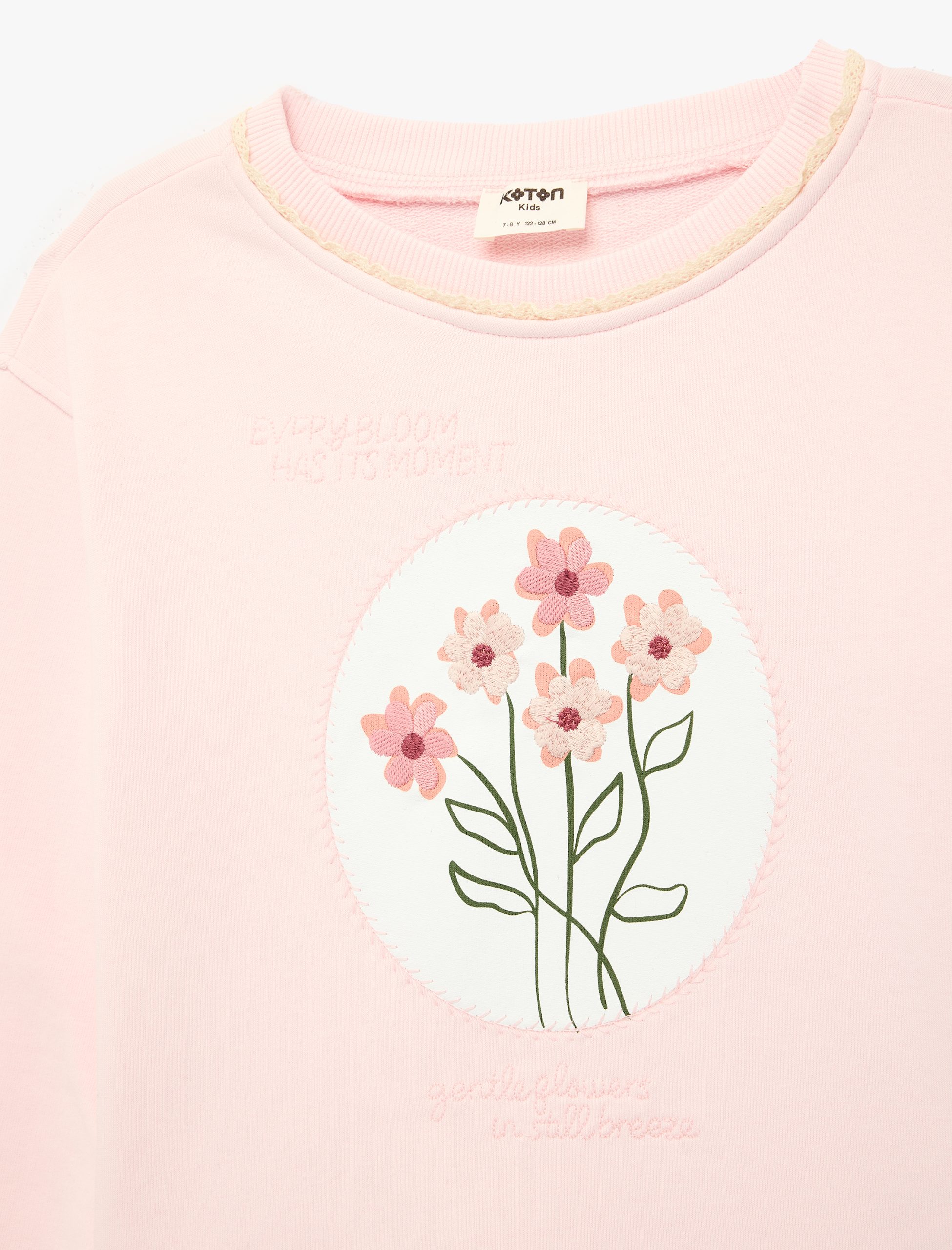 Kız Çocuk Nakış Detaylı Uzun Kollu Bisiklet Yaka Sweatshirt