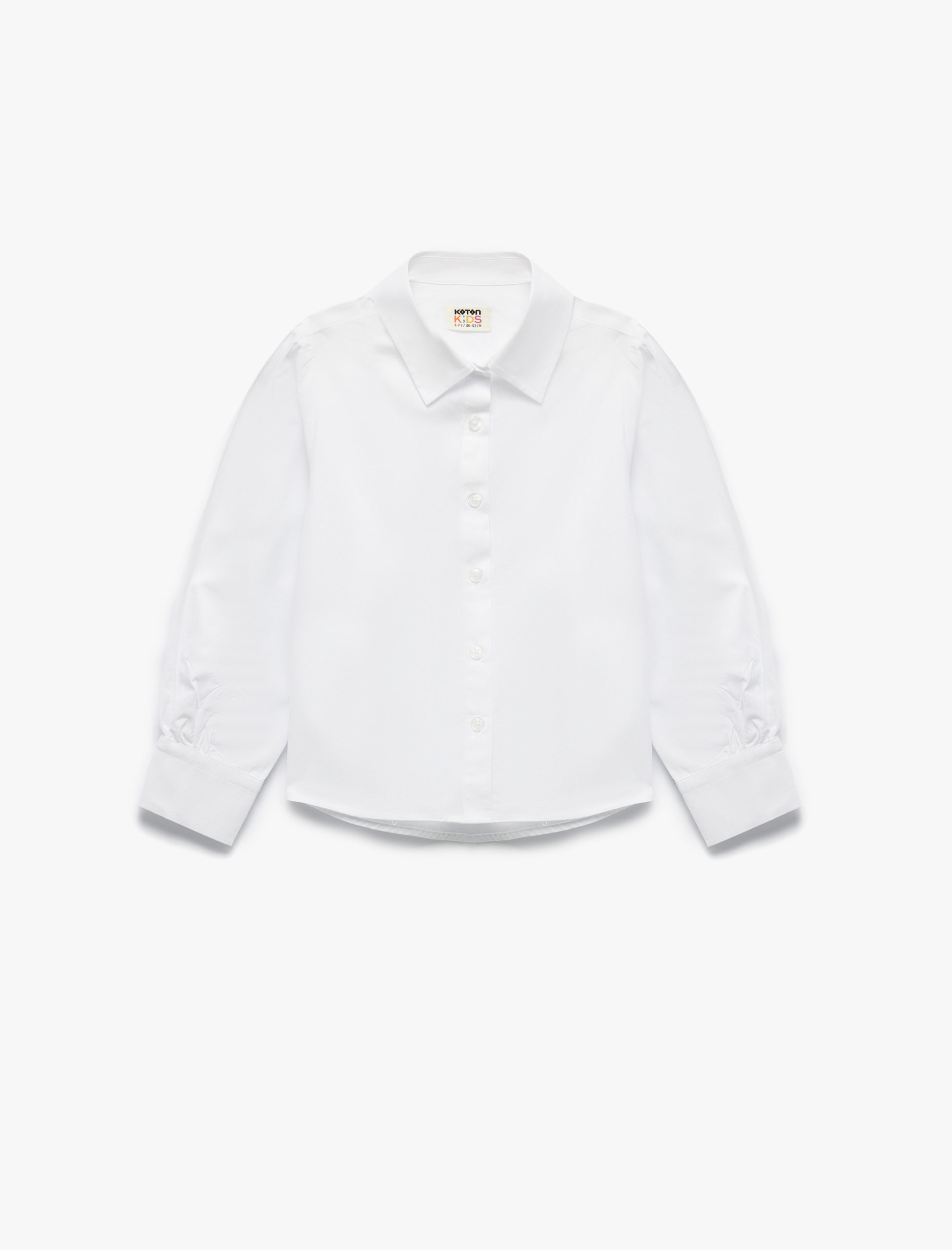 Kız Çocuk Pamuklu Düğmeli Uzun Kollu Basic Gömlek