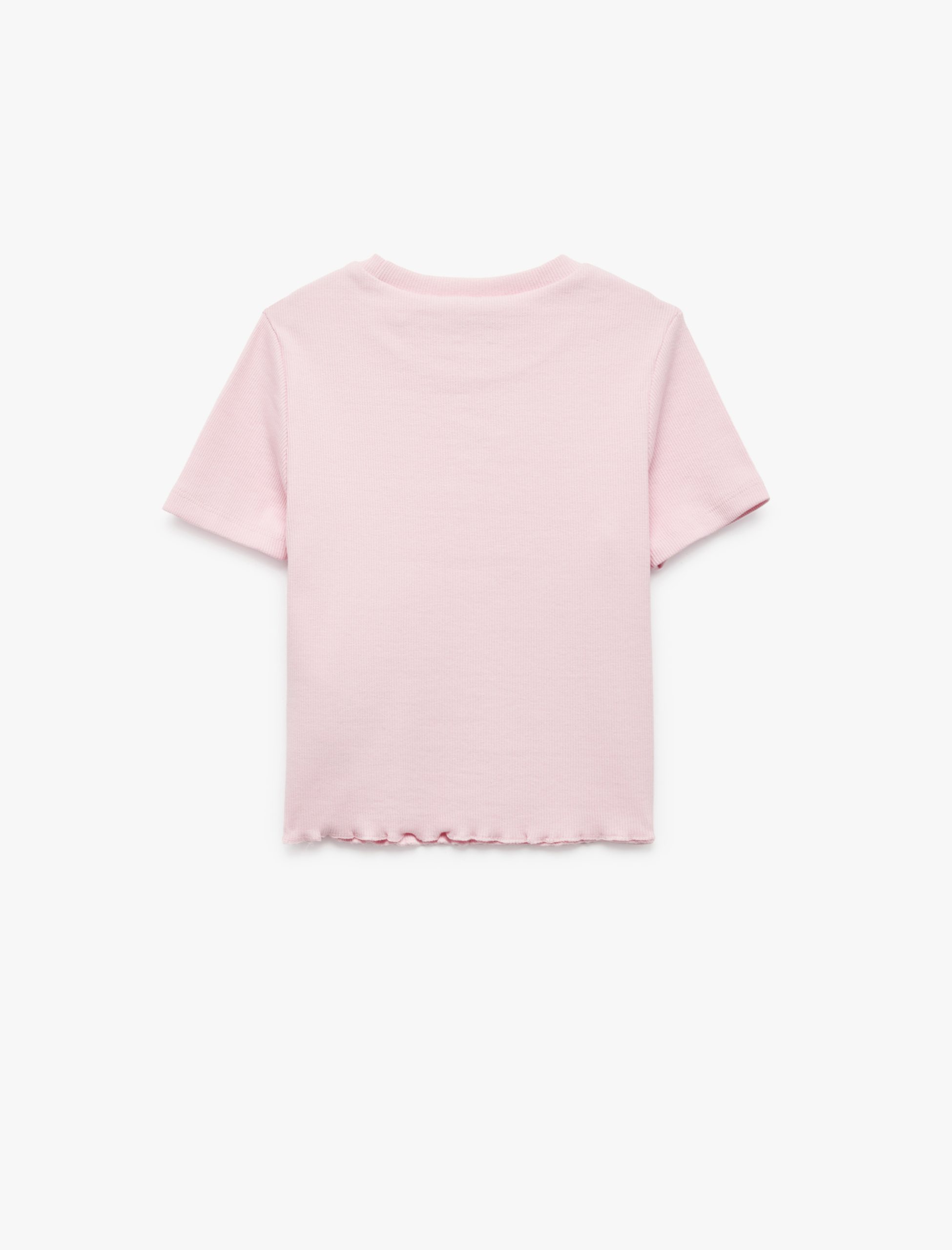 Kız Çocuk Pamuklu Kalp Detaylı Kısa Kollu Bisiklet Yaka Basic Crop Tişört