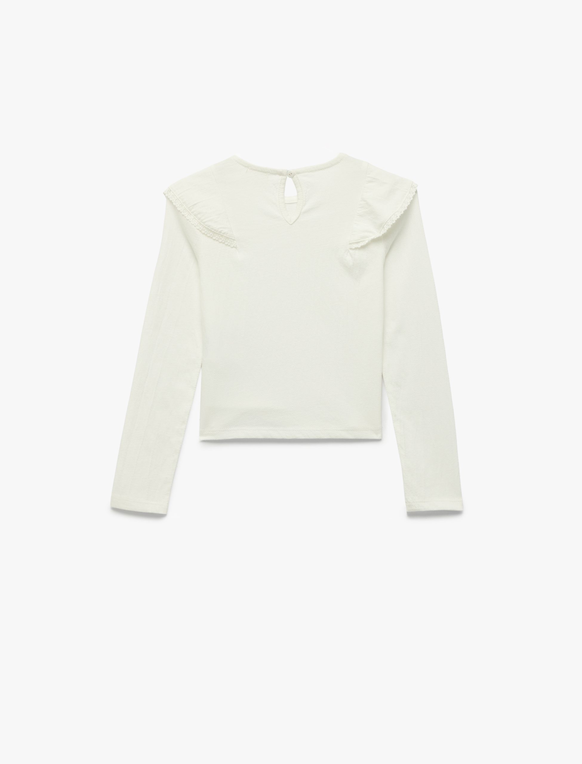 Kız Çocuk Pamuklu Uzun Kollu Bisiklet Yaka Fırfırlı Bluz