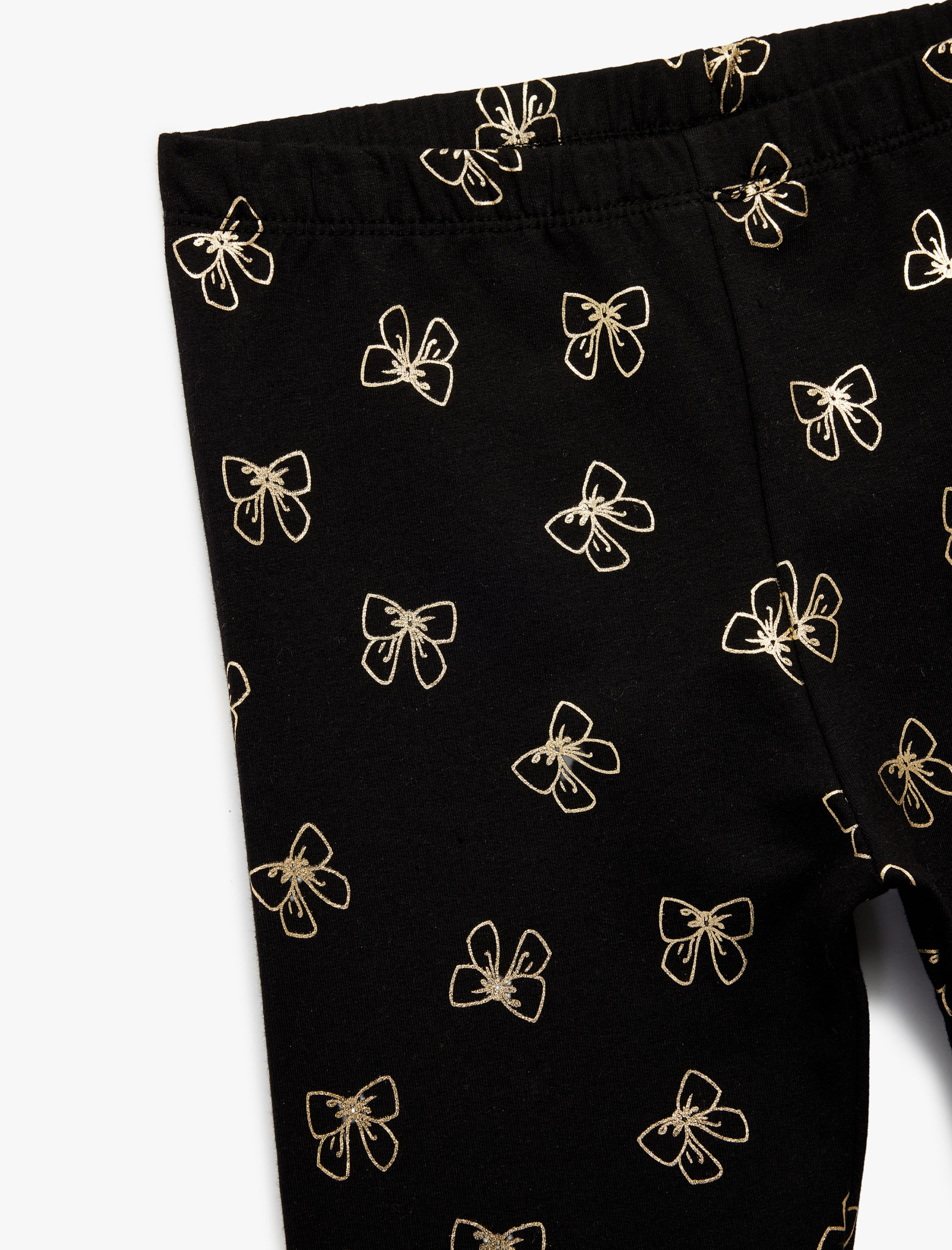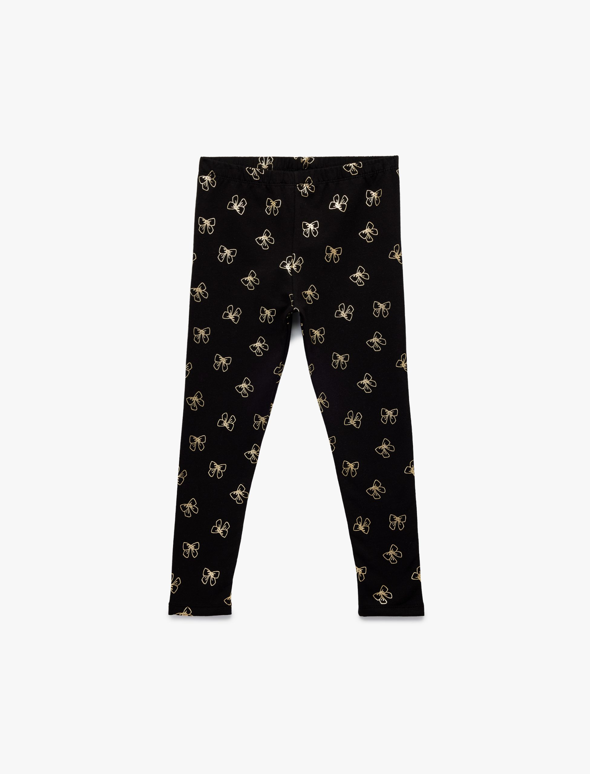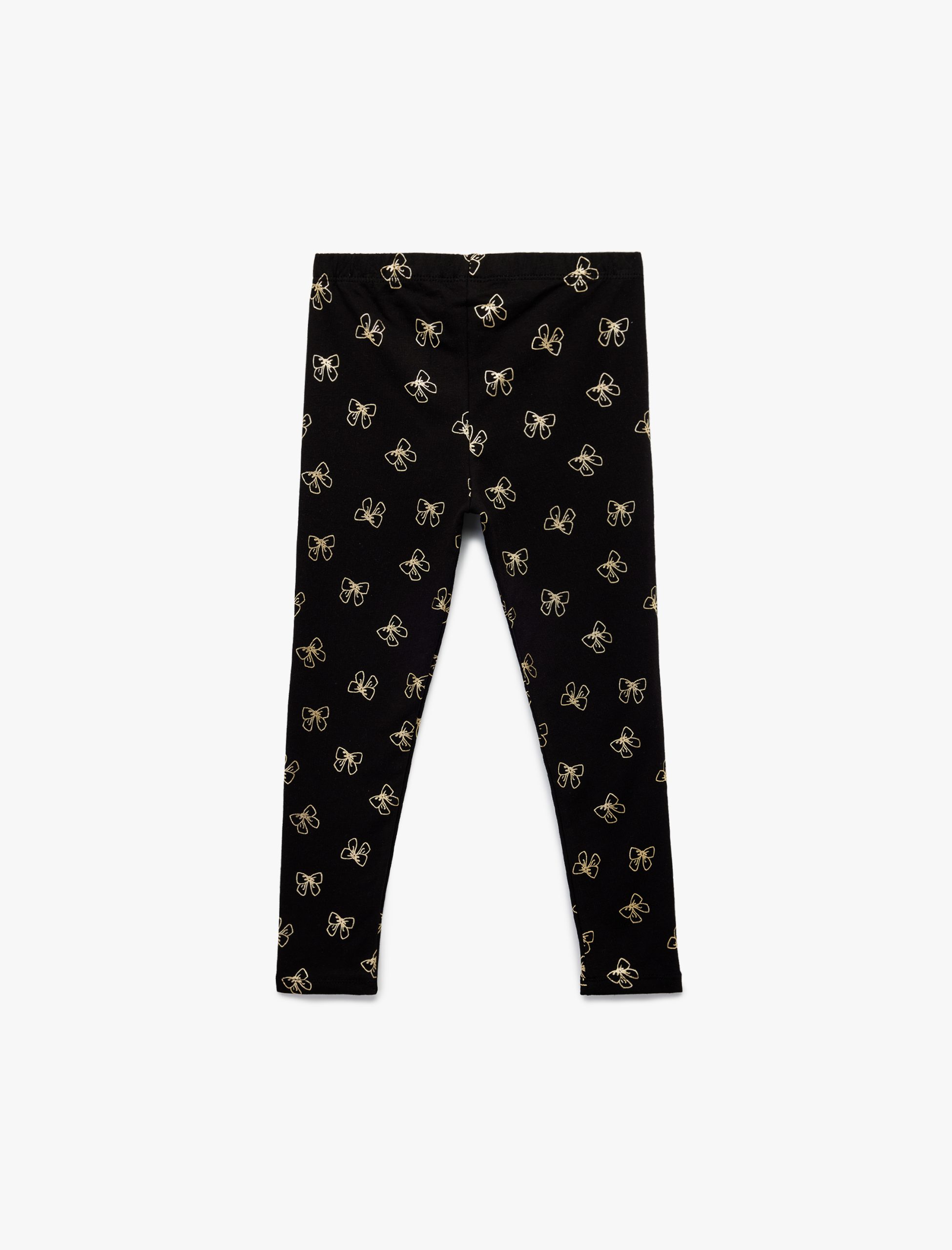 Kız Çocuk Şardonlu Dar Kalıp Fiyonklu Baskılı Pamuklu Tayt