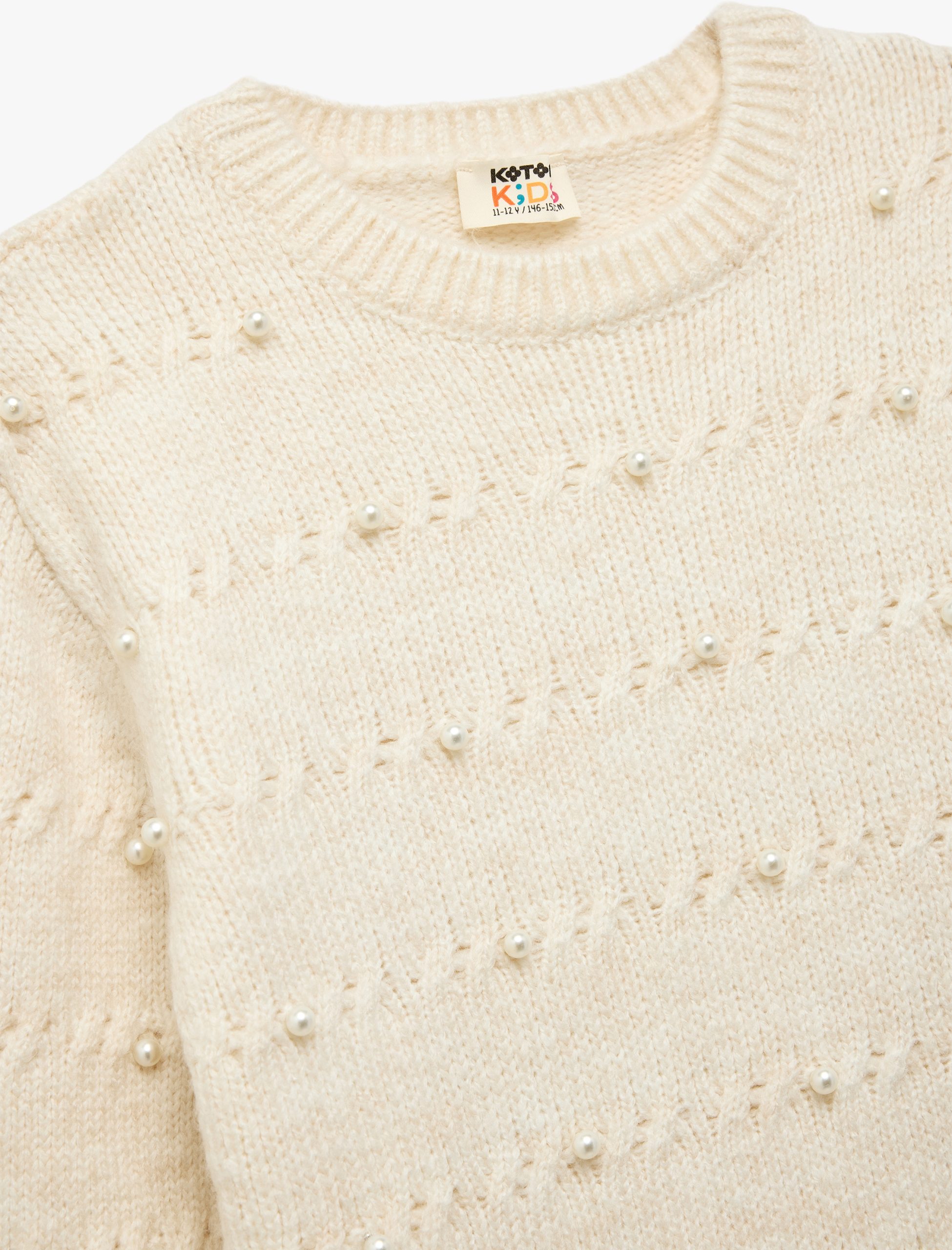 Kız Çocuk Uzun Kollu Bisiklet Yaka Boncuk Detaylı Triko Kazak