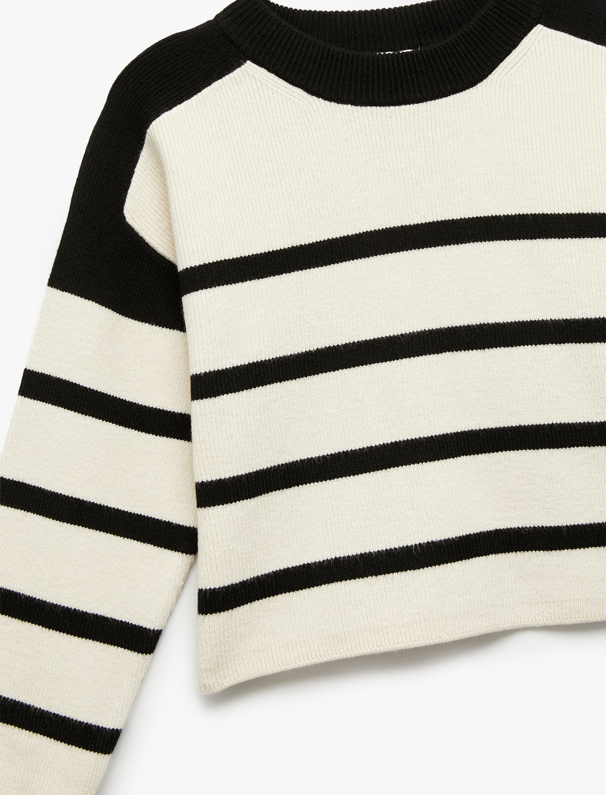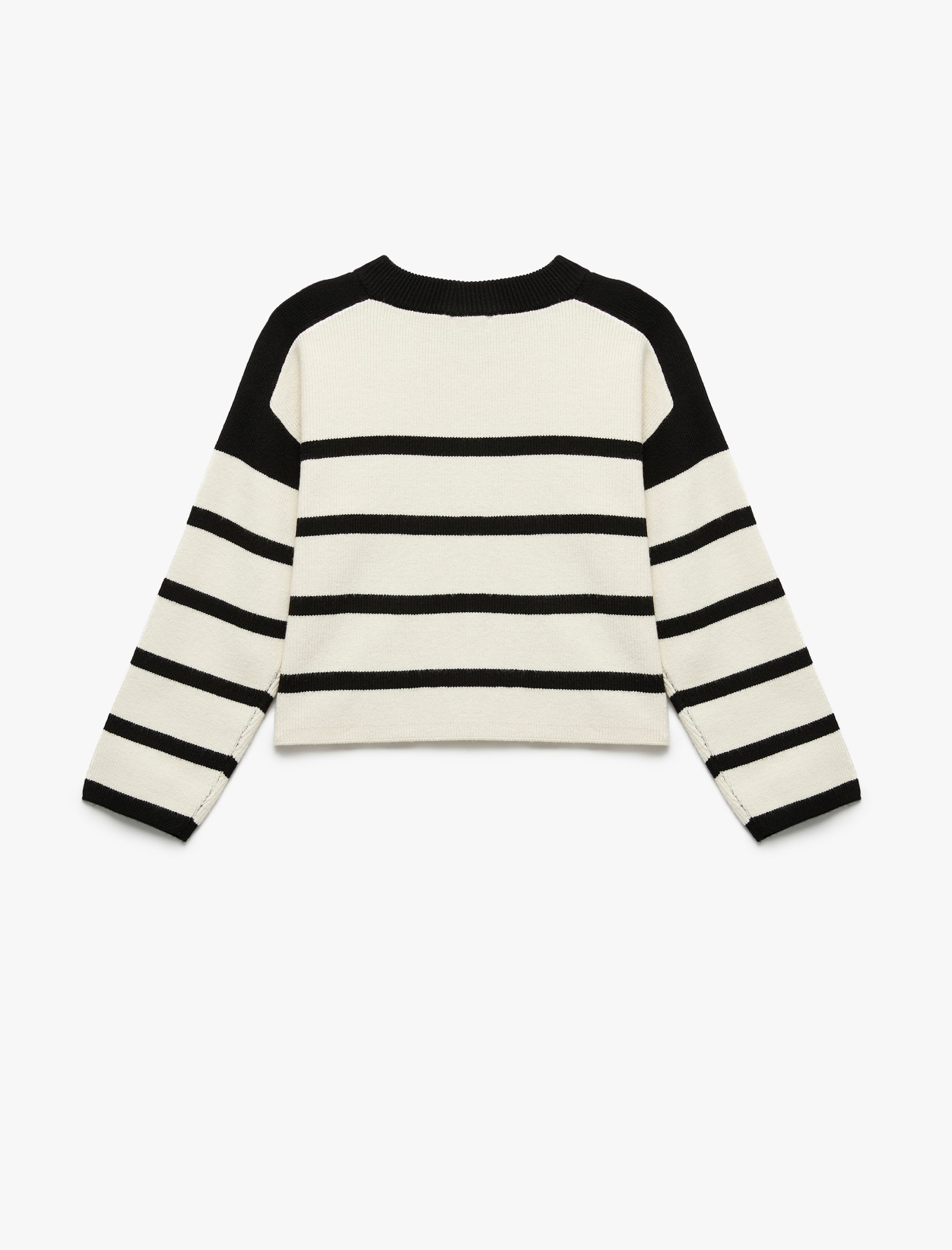 Kız Çocuk Uzun Kollu Bisiklet Yaka Çizgili Triko Kazak