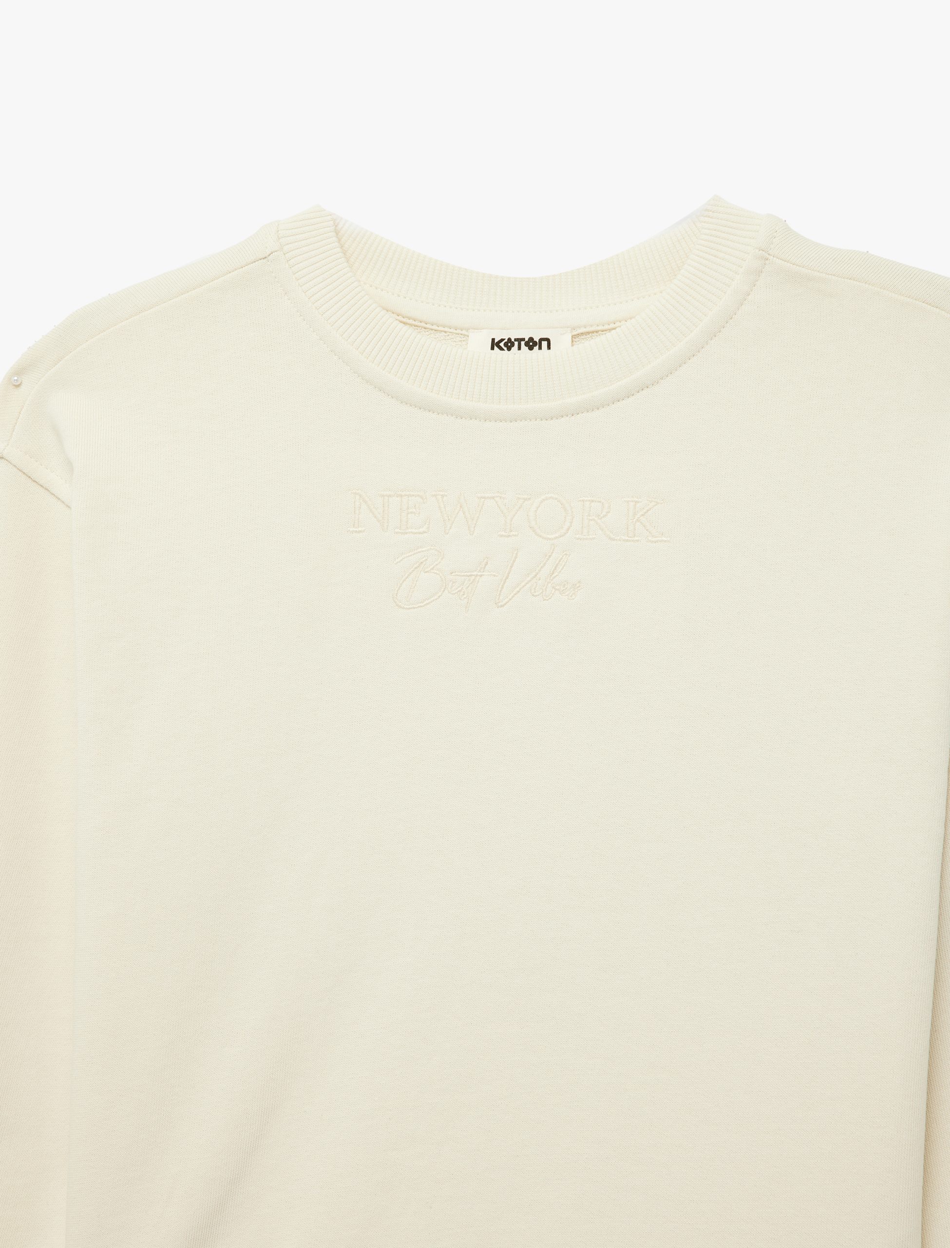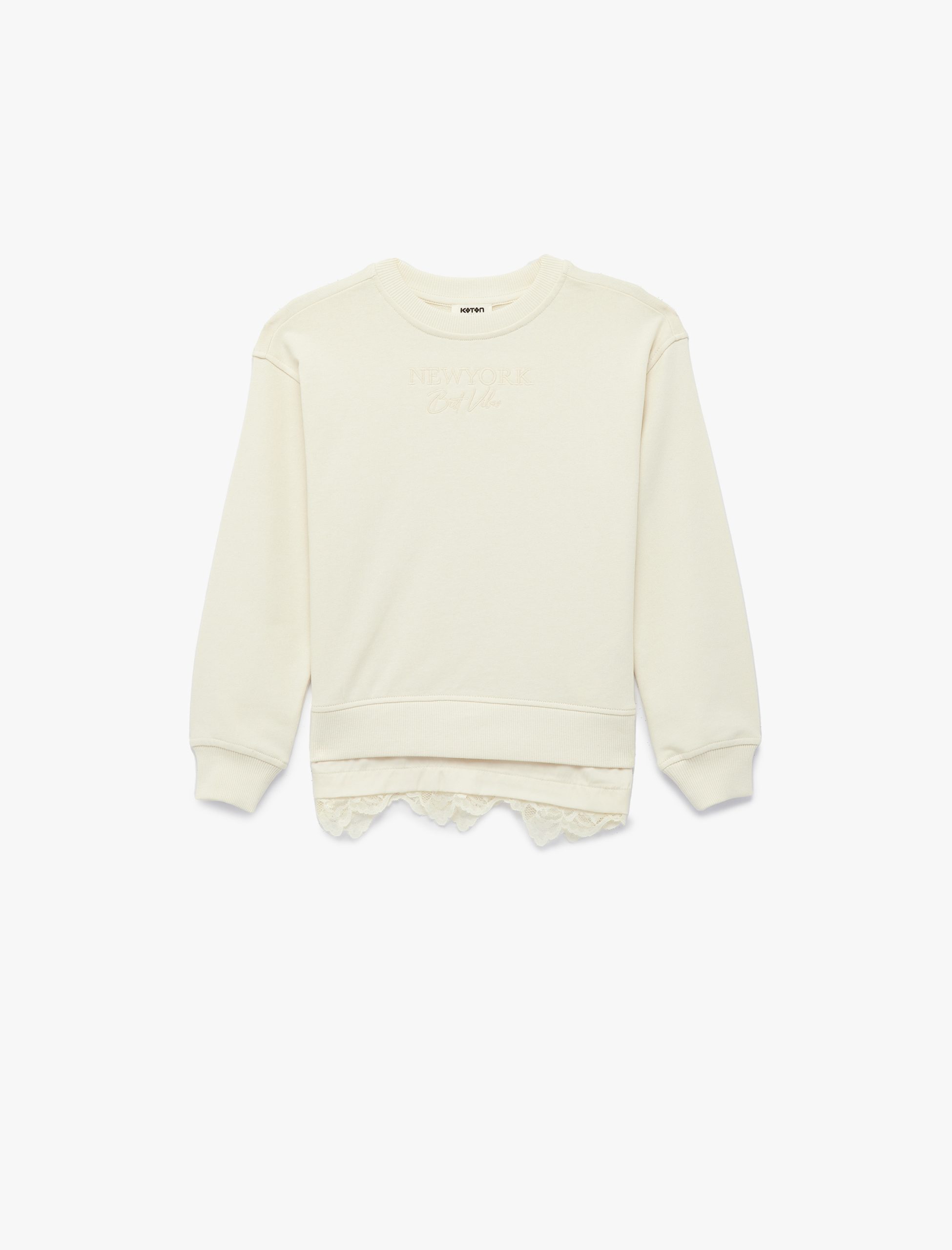 Kız Çocuk Uzun Kollu Bisiklet Yaka Dantel Detaylı Pamuklu Sweatshirt