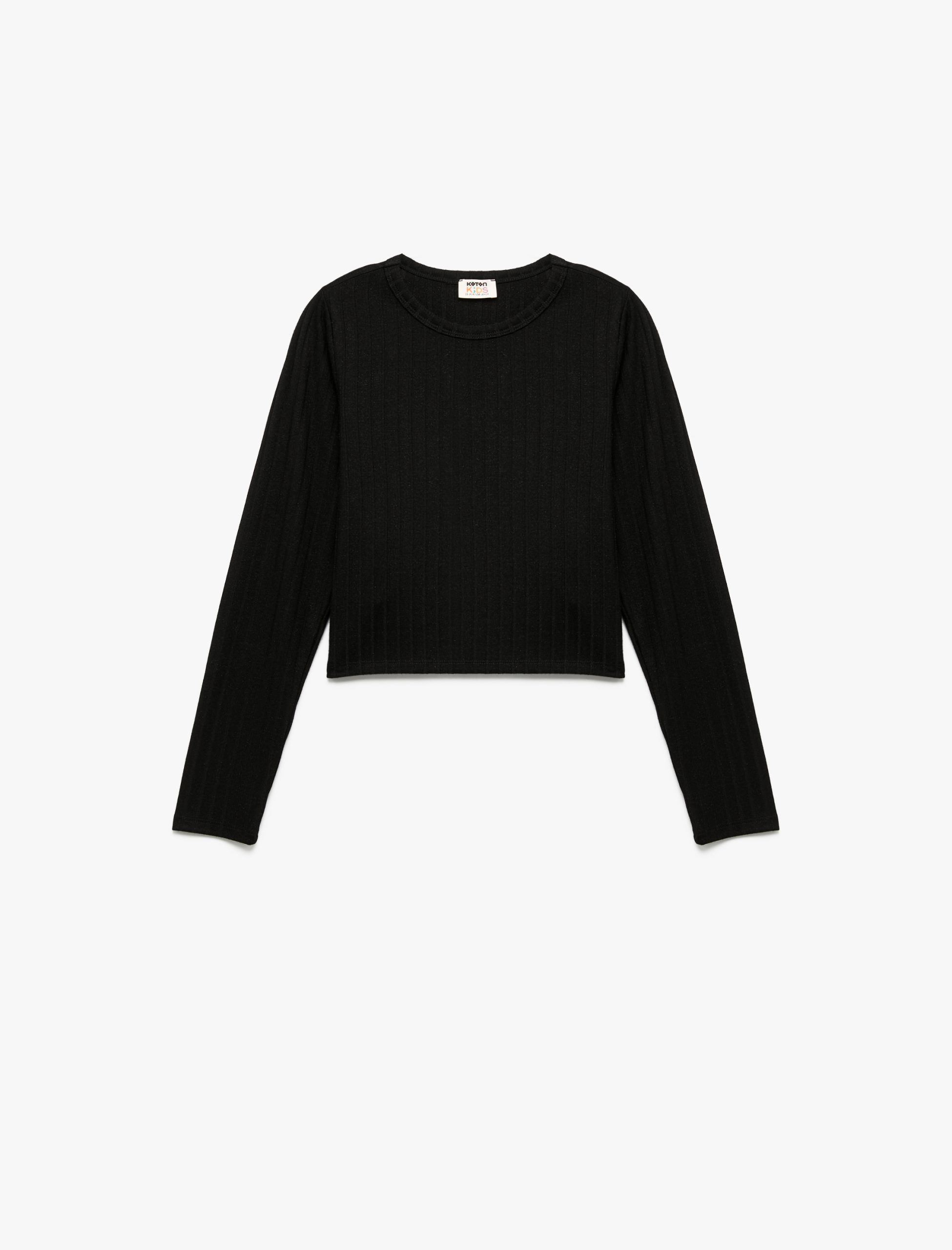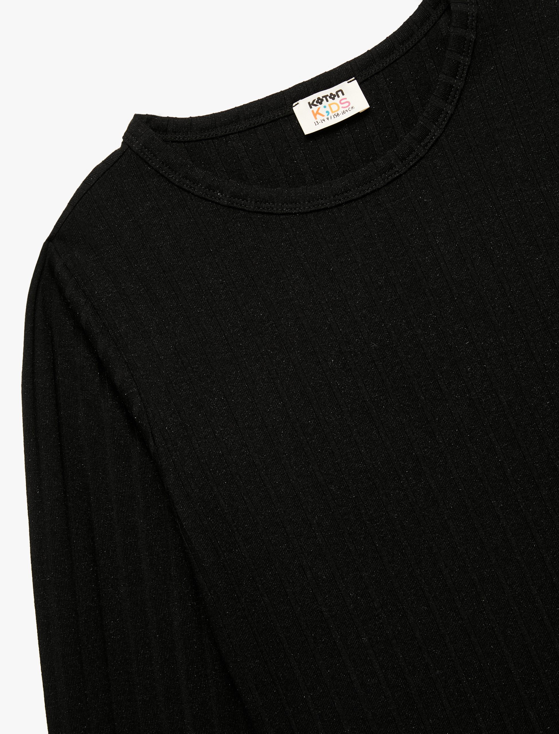 Kız Çocuk Viskon Karışımlı Uzun Kollu Bisiklet Yaka Basic Tişört