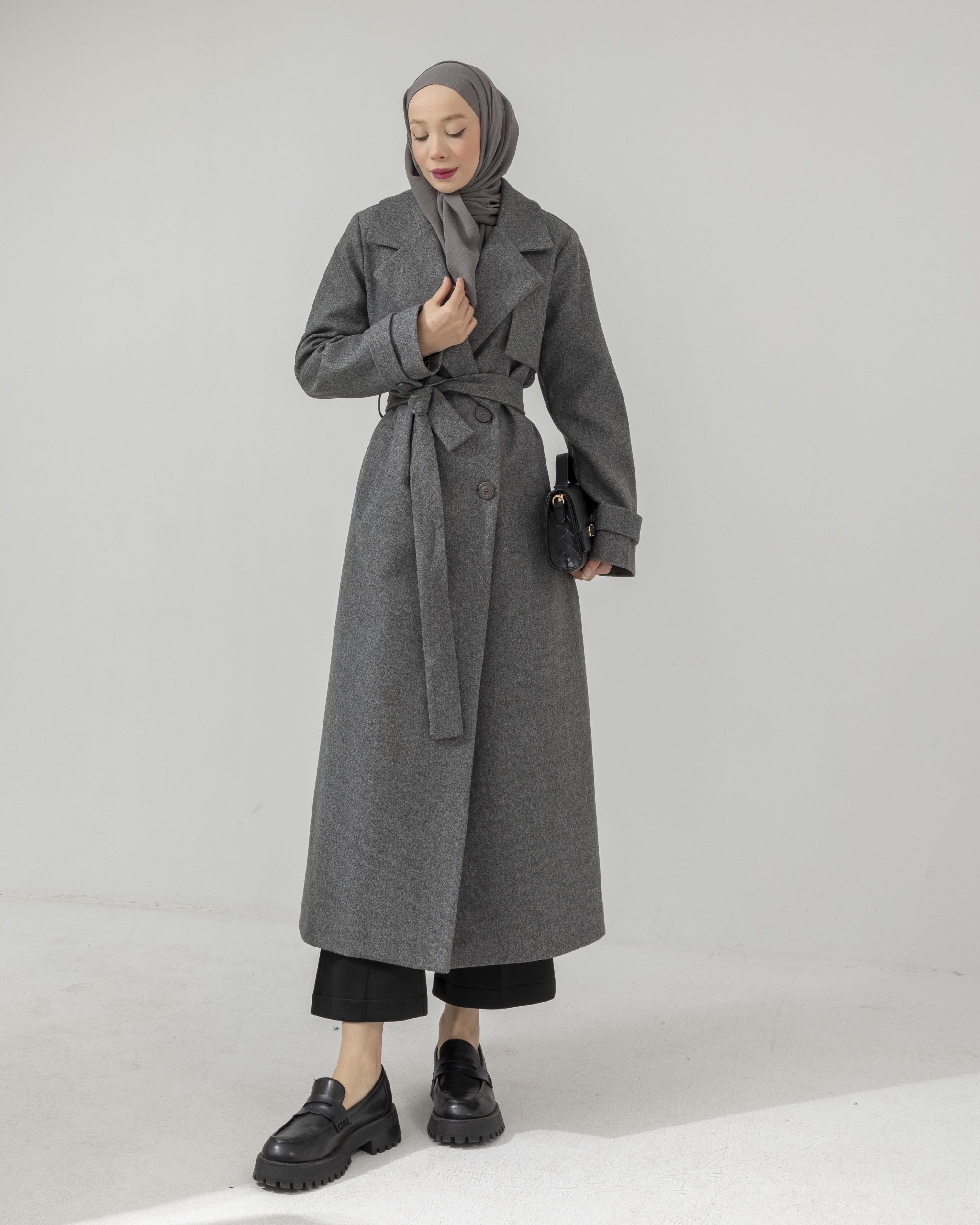 Dik yaka tasarımıyla modern ve güçlü bir duruş sunan bu kaban, sade çizgileri ve zarif formuyla şehir şıklığını sofistike bir seviyeye taşır. Yapısal kesimi silueti kusursuzca şekillendirirken, sıcak tutan dokusu mevsim geçişlerinde konfor sağlar.