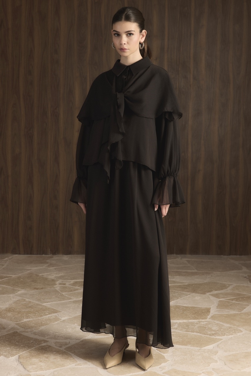 Kol Gipeli Şallı Şifon Takım – Acı Kahve