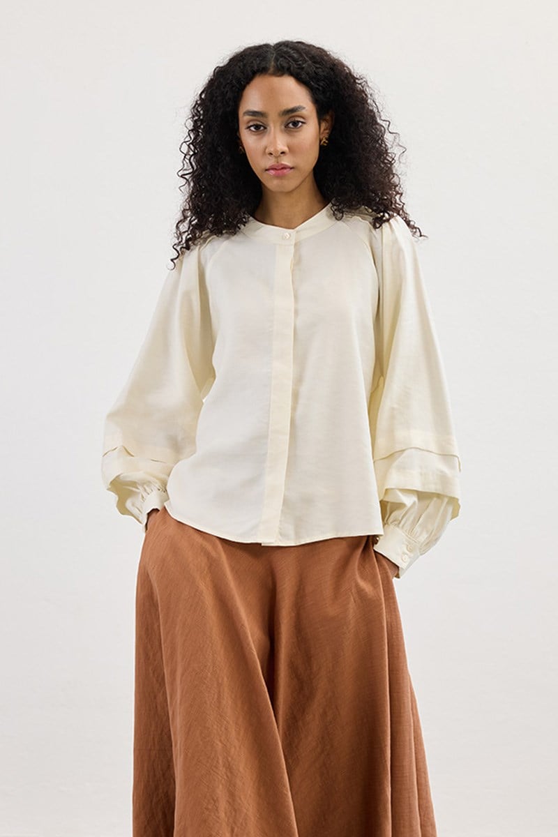 Kol Katmanlı Gömlek Ekru