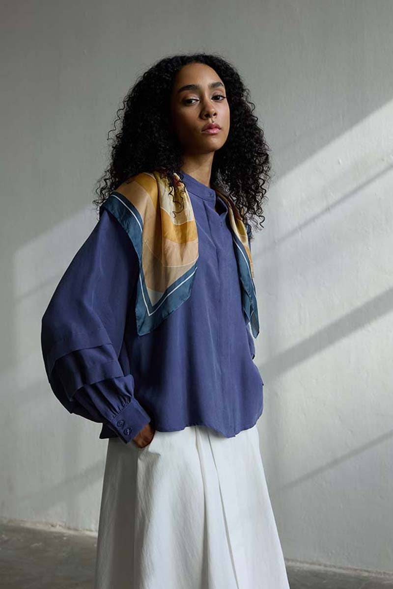 Kol Katmanlı Gömlek İndigo