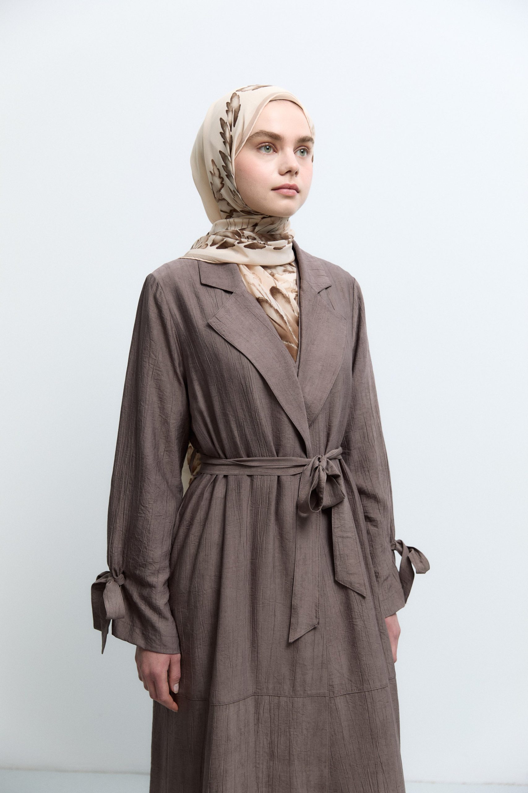 Kolları Bağlama Detaylı Trenç, maskülen kesimi feminen bir zarafetle harmanlayarak dış giyimde fark yaratmak isteyenler için tasarlandı.