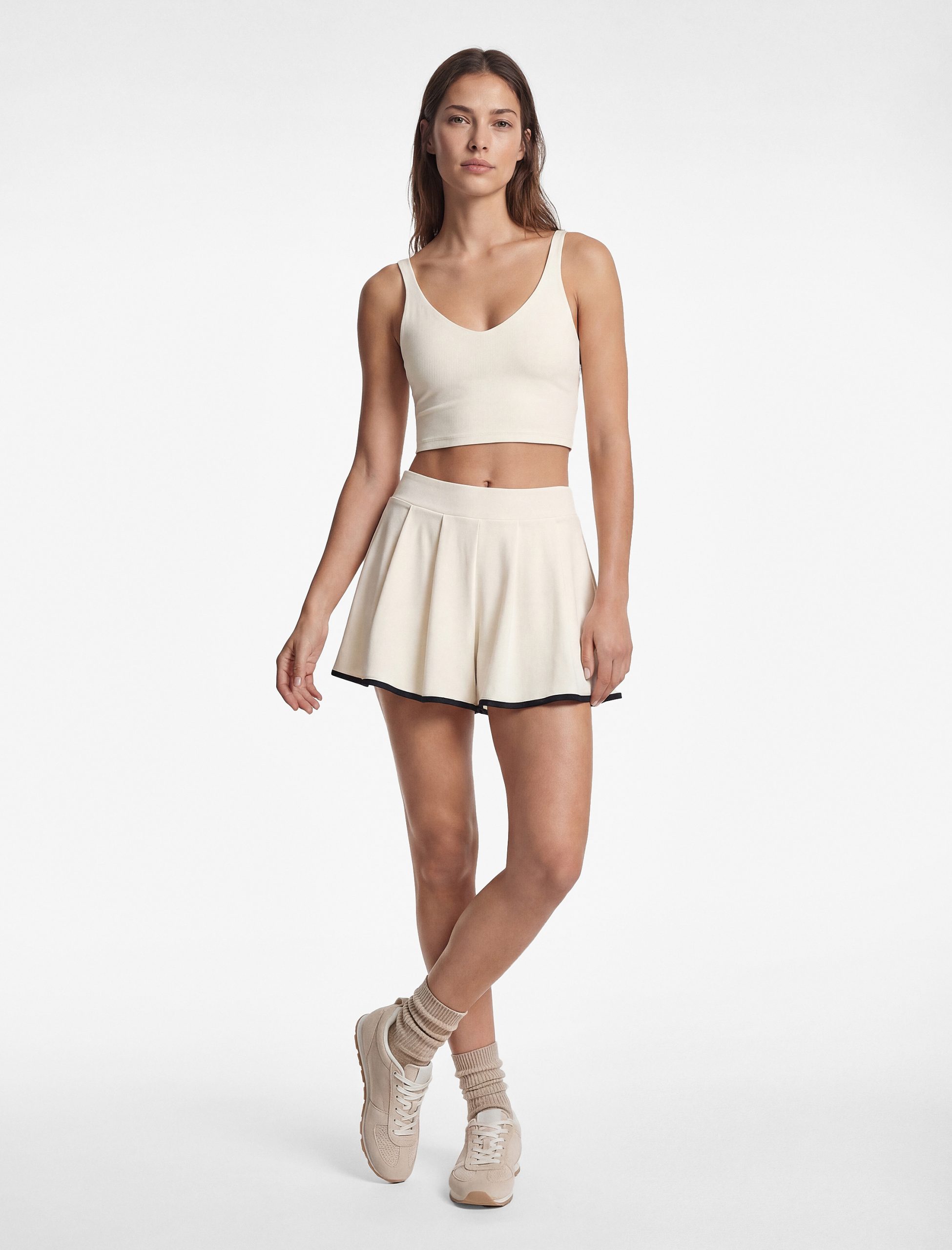 Sporcu sütyeni tasarımı, gün boyu konfor ve şıklığı bir arada sunuyor. V yaka detayı ve kolsuz tasarımı ile spor aktivitelerinizde rahat hareket etmenizi sağlıyor. Slim fit kesimi sayesinde vücuda mükemmel oturuyor ve destekleyici bir yapı sunuyor. Kaplı silueti, sütyeni daha dayanıklı hale getirirken maksimum esneklik ve hareket kabiliyeti sağlıyor. Spor giyim trendlerini yakından takip etmek isteyenler için ideal bir seçenek sunuyor. Stil Önerisi Spor sütyen, rahat ve şık bir görünüm elde etmenizi sağlıyor. Yüksek belli bir tayt ve hafif bir spor ayakkabı ile kombinlediğinizde, hem spor salonunda hem de günlük gezilerinizde rahatça kullanabilirsiniz. Üzerine ince bir crop sweatshirt veya hafif bir ceket ekleyerek, serin havalarda da stil sahibi olabilirsiniz. Trend spor çantalar ve minimal aksesuarlarla görünümünüzü tamamlayarak, sportif bir şıklık yakalayabilirsiniz. Ürün Özellikleri Kol Tipi: Kolsuz Yaka Tipi: V Yaka Fit: Slim Fit Stil: Kaplı Kumaş: %81 Polyester, %19 Elastan Kullanım Alanı: Spor Giyim Koton’un spor ürünleriyle tarzınıza dinamizm katın. Spor aktivitelerinizde ve günlük kombinlerinizde rahat ve şık bir kullanım sunan spor giyim koleksiyonunu keşfedin!