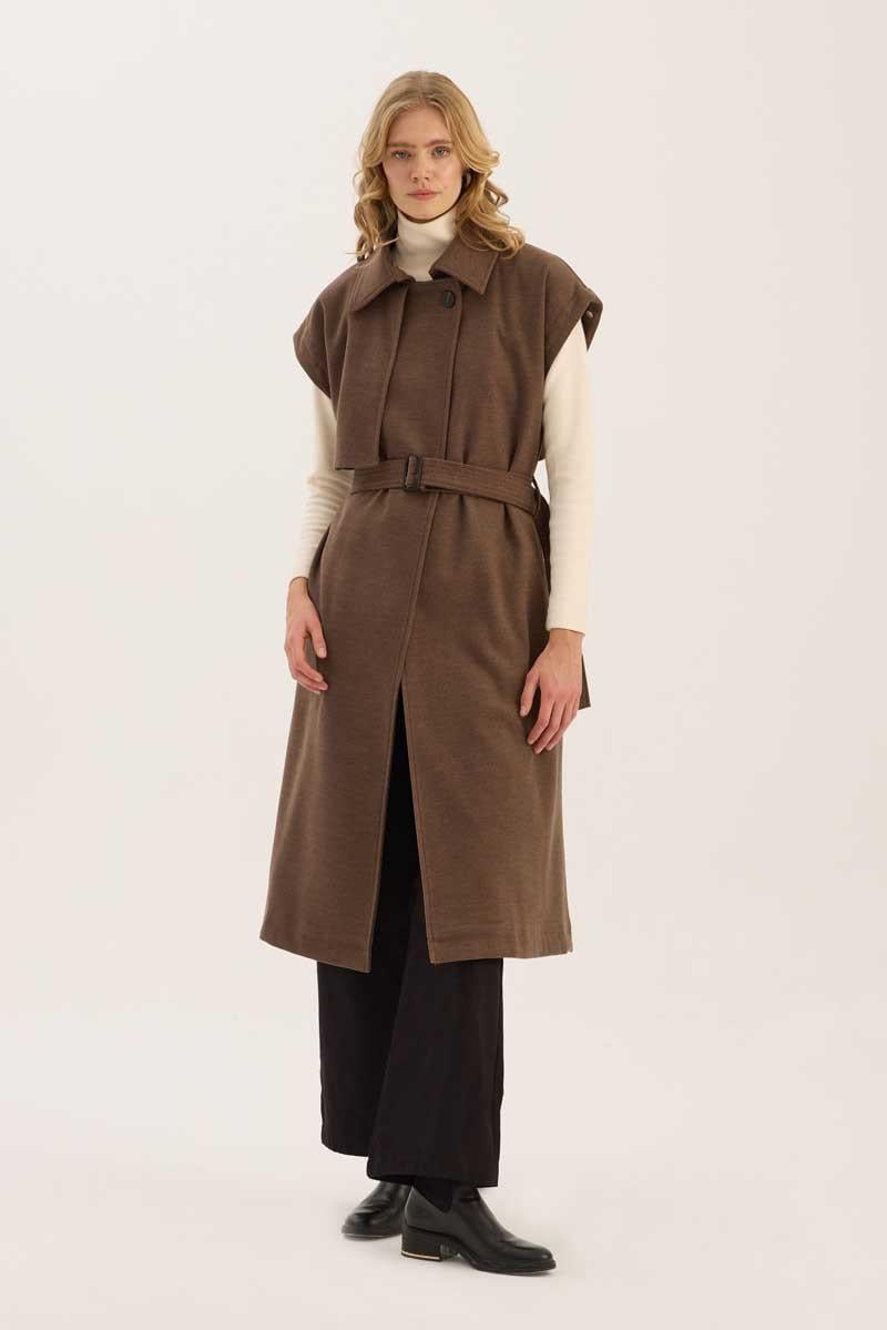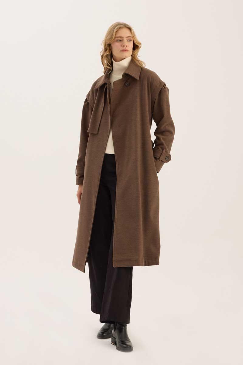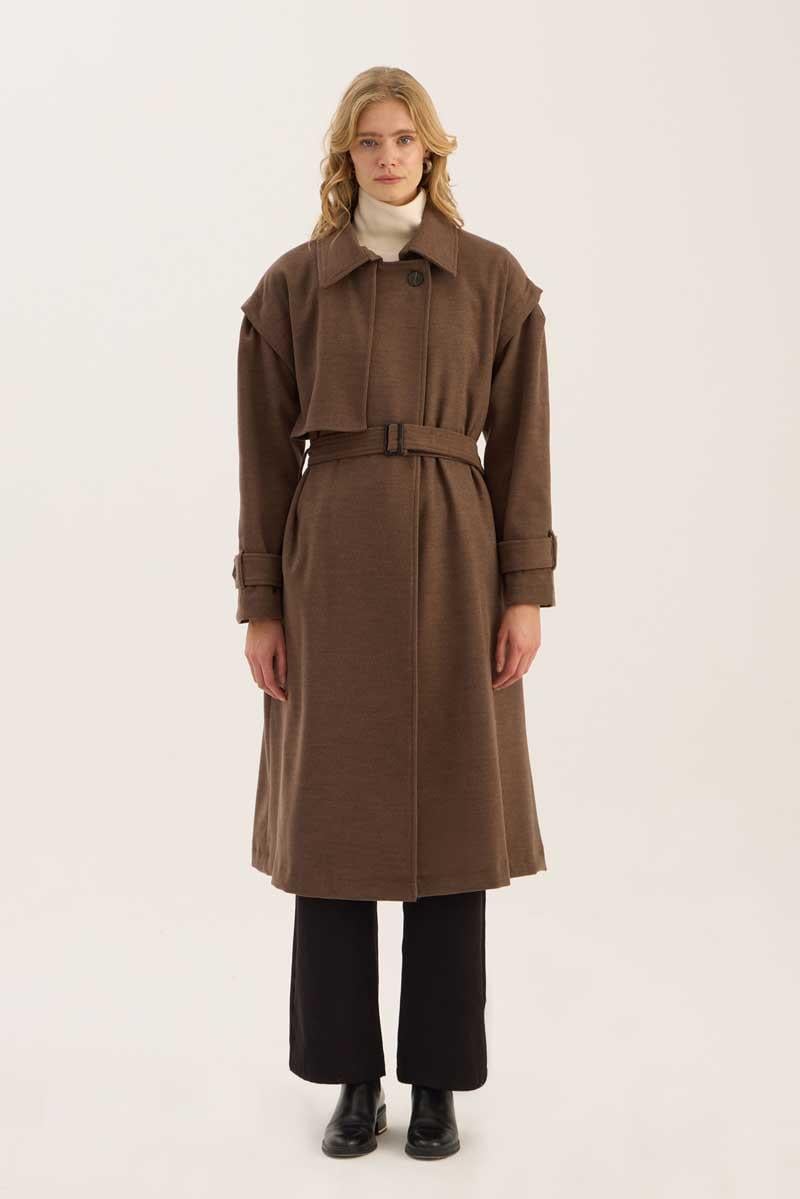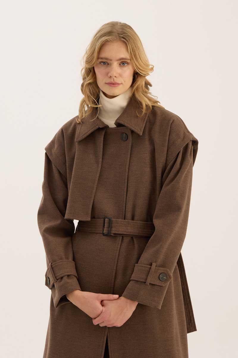 Kolu Çıkabilen Kaşe Kaban Kahverengi
