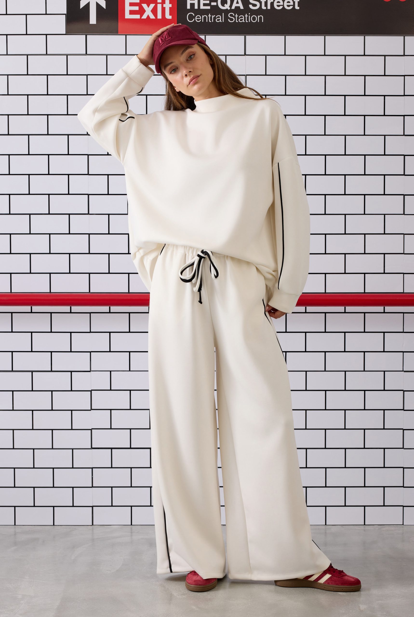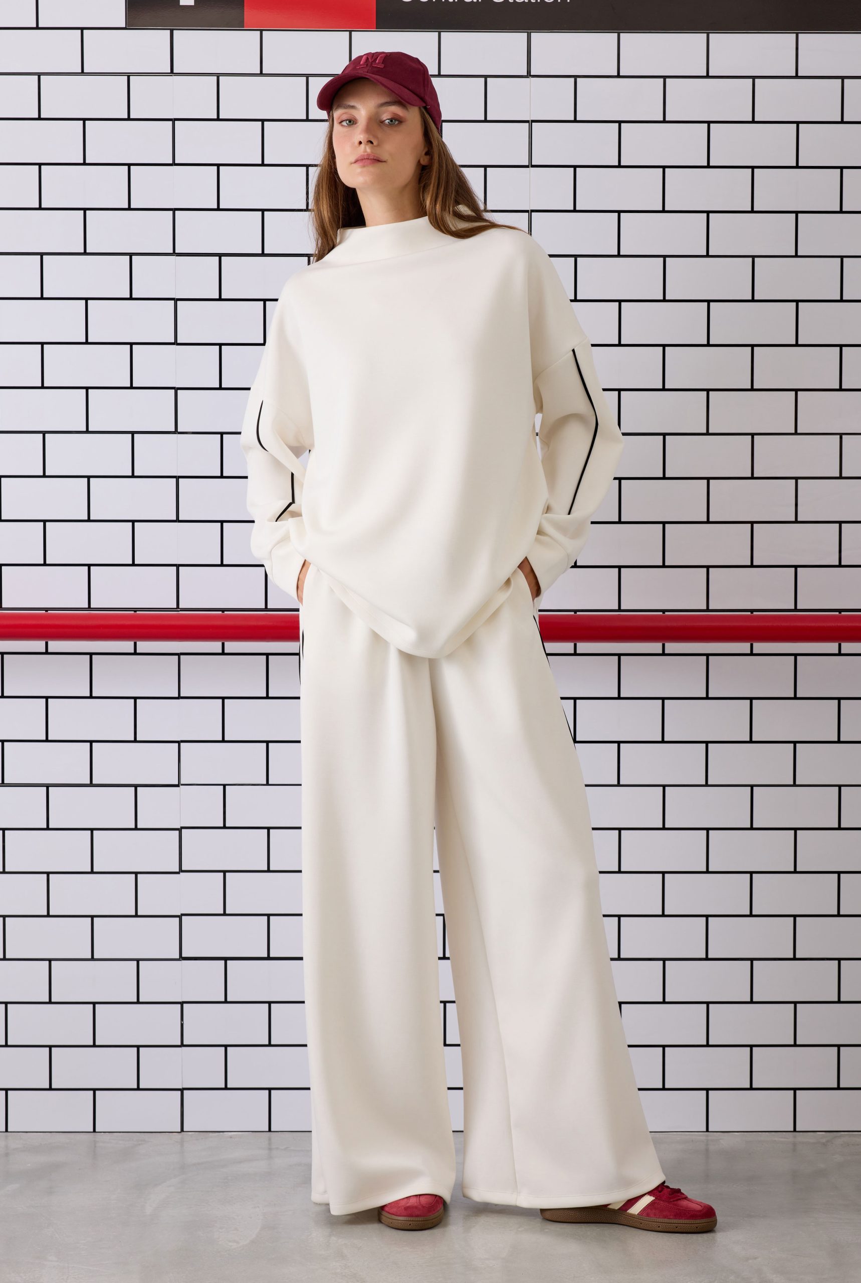 Kontur Dikişli Krem Rengi Eşofman Takımı
