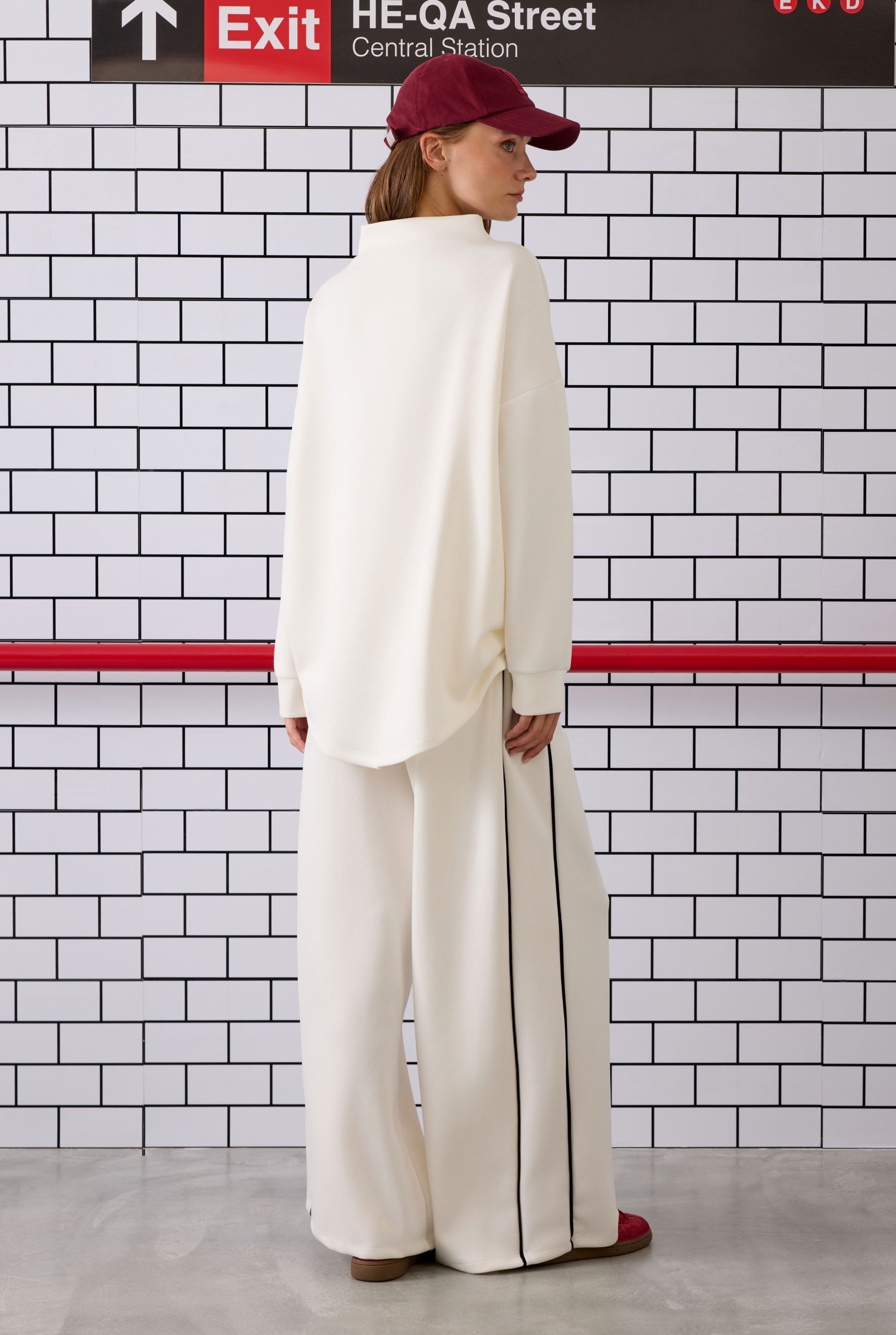Modal kumaştan üretilen kontur dikişli eşofman takımı, hem şıklık hem de konfor sunar. Kontrast dikişler tasarımı vurgulayarak klasik bir eşofman takımına modern bir dokunuş katar. Modal bileşeni yumuşak ve akıcı bir doku sağlarken, elastan esneklik katar. Kesim bol; modelden daha az bol bir görünüm tercih ederseniz bir beden küçük seçmenizi öneririz. Bakım talimatları: 30°C’de hassas yıkama. Kurutma makinesinde kurutmayınız. Üst Ölçüler: Uzunluk: 74 cm (Ürün uzunluğu üretim partileri arasında 1-5 cm farklılık gösterebilir.) Beden Tablosu: Göğüs Kalça Kol Biceps Beden S-M: 126 cm 120 cm 48 cm 40 cm Beden M-L: 130 cm 124 cm 49 cm 42 cm Alt Ölçüler: Uzunluk: 109 cm (Ürün uzunluğu üretim partileri arasında 1-3 cm farklılık gösterebilir.) Beden Tablosu: Bel Kalça Beden S-M: 60 cm 115 cm Beden M-L: 64 cm 119 cm Modelin Ölçüleri: Boy: 176 cm Göğüs: 84 cm Bel: 62 cm Kalça: 88 cm Modelin Giyimi: S-M