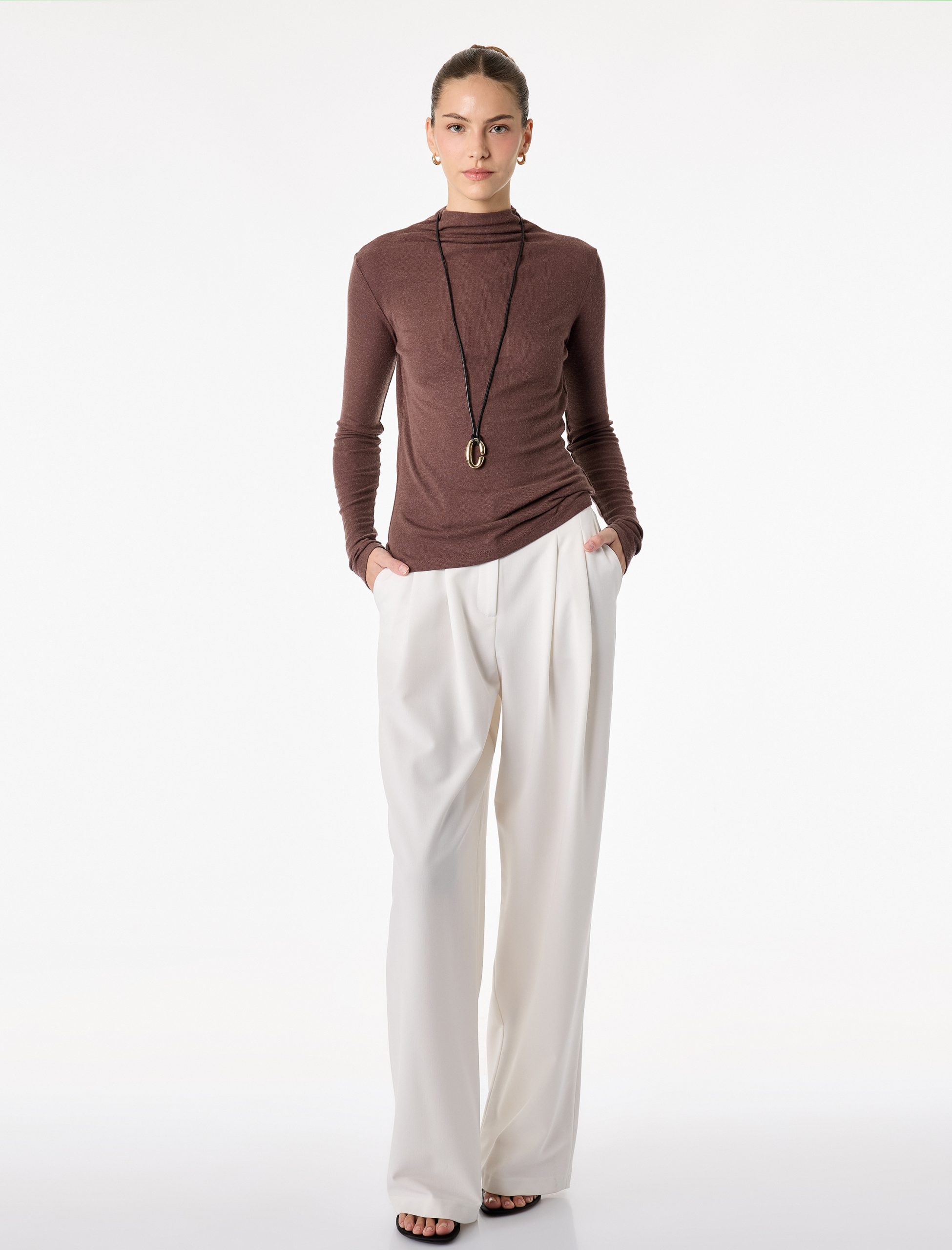 Şık ve sade tasarımıyla ön plana çıkan uzun kollu tişört, gardırobunuza zarafet katıyor. Dik yaka tasarımı ve slim fit kesimi ile vücudu nazikçe sararak bedeninize zarif bir silüet veriyor. Koyun yünü karışımlı kumaşı sayesinde nefes alabilir bir yapıya sahip olan tişört, favoriler arasında yer alıyor. Kolay kombinlenebilir yapısı sayesinde ister günlük giyimde ister ofis stilinizde rahatlıkla kullanabilirsiniz.