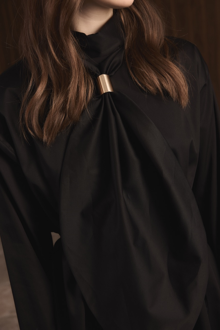 Kravat Detay Pamuk Saten Gömlek – Siyah
