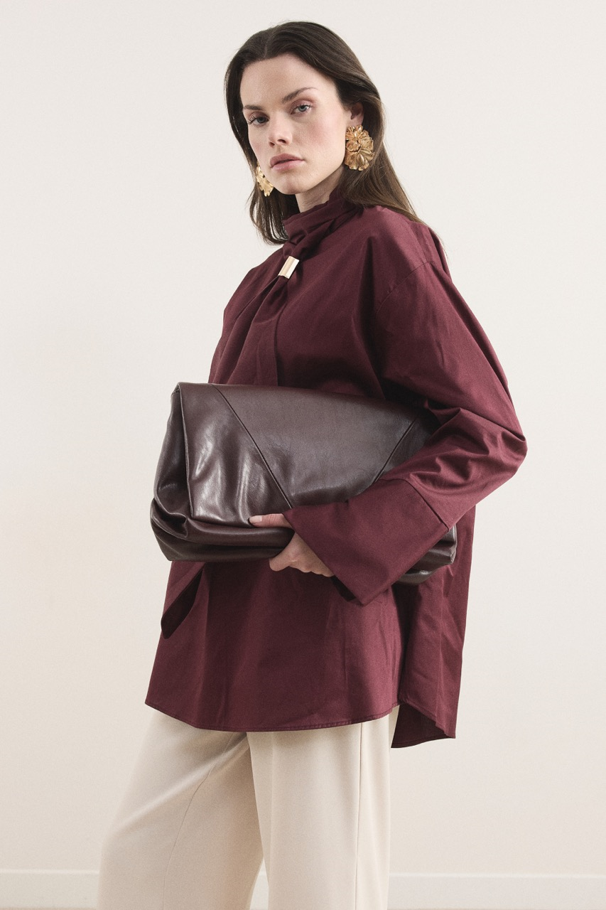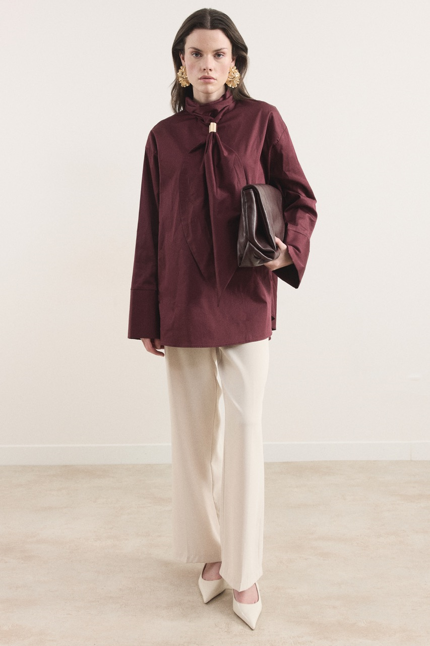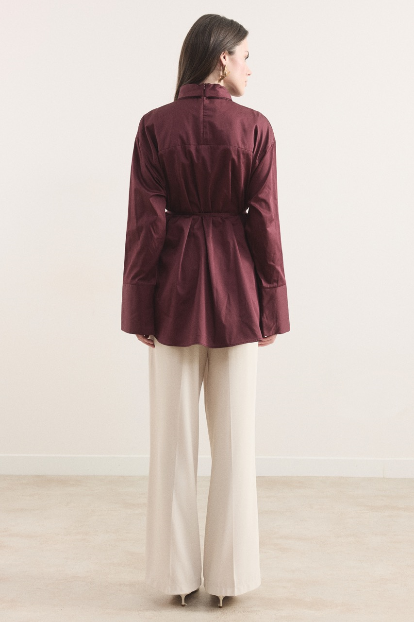 Kravat Detaylı Pamuk Saten Gömlek – Bordo