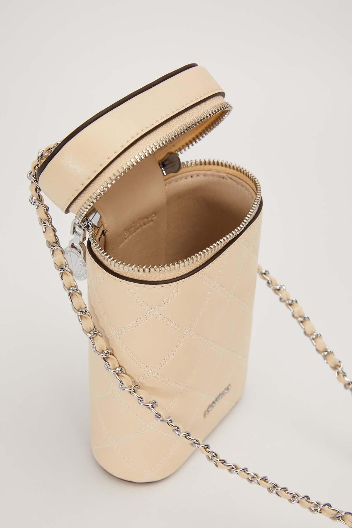 Krem Silindir Form Kapitone Omuz Çantası