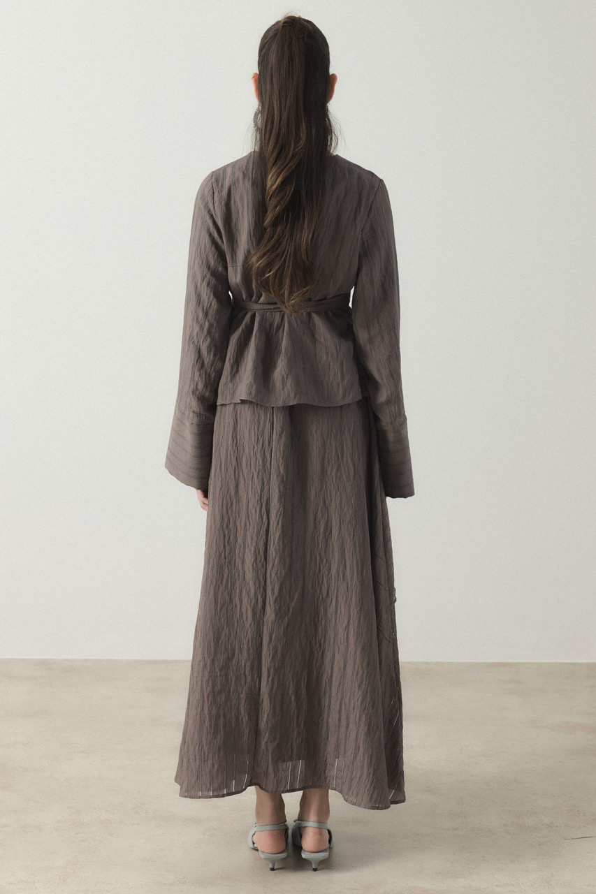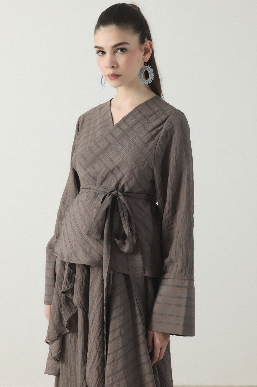 Kruvaze Çizgili Etek Takım – Kahve