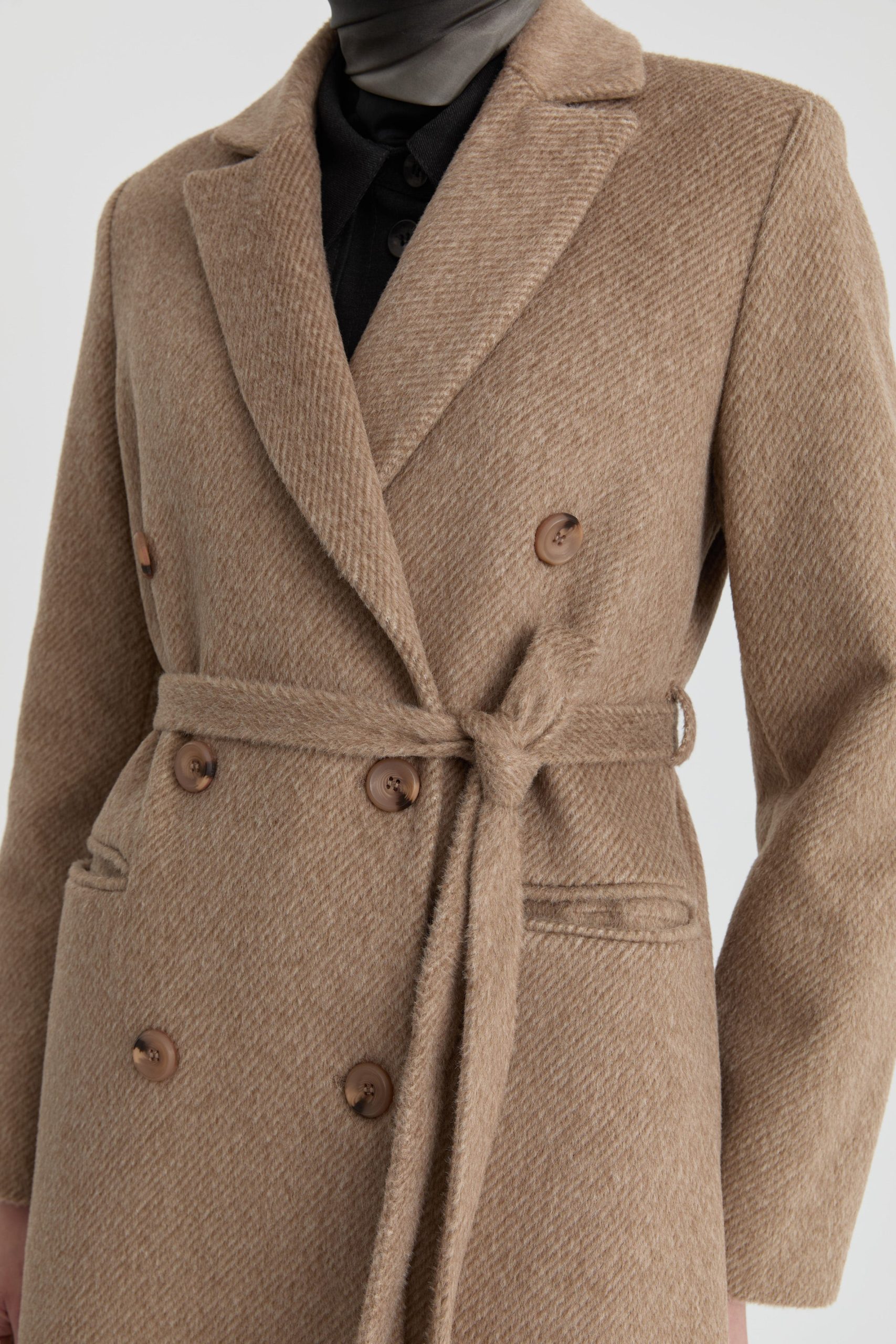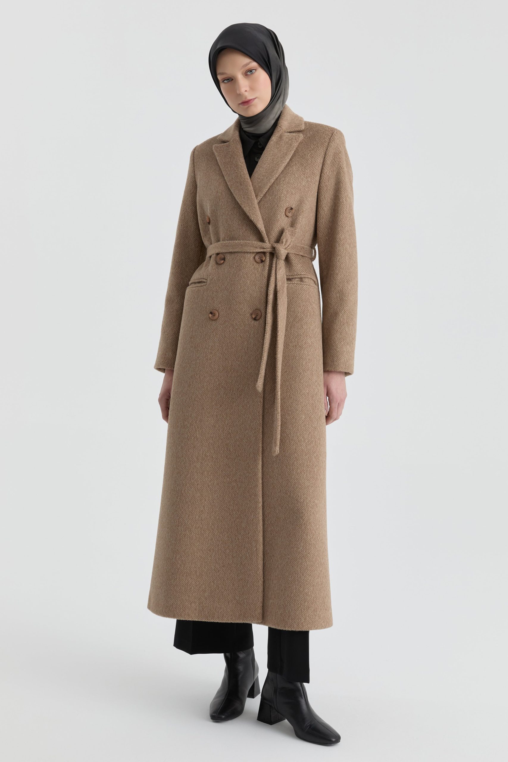 Kruvaze İnce Kuşaklı Kaban – Vizon