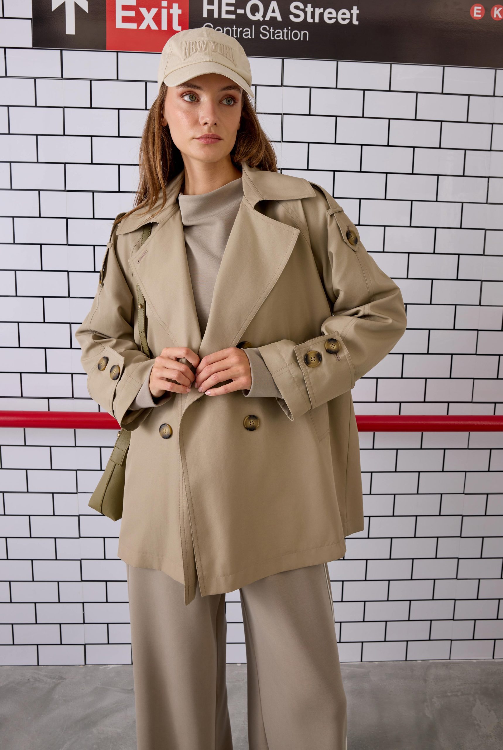 Kruvaze Kesim Trençkot Mat Vizon